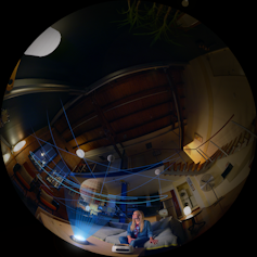 This system, developed by computer graphics company Evans and Sutherland, replaced the multiple lenses of earlier projectors with a fisheye lens. A single beam of light swept across the whole dome so rapidly that it seemed to create a single image – albeit in a bizarre green colour, rendering a starfield of fuzzy green blobs.