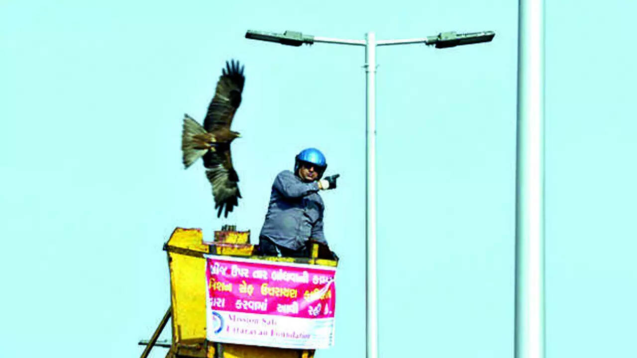 AHMEDABAD: For the 15th year in a row, Manoj Bhavsar was seen fastening safety wires on city bridges to minimise injuries caused to riders by kite strings.
