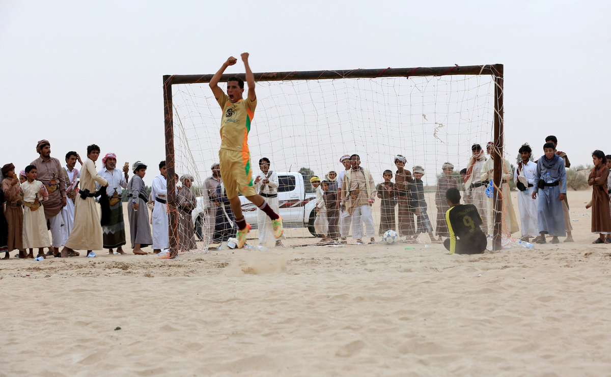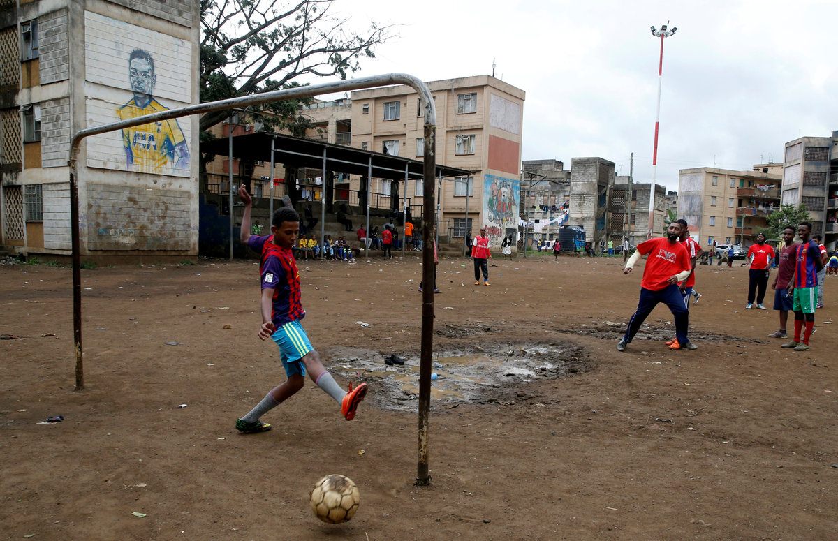 Laye shoots to score as he plays soccer in the ACI 2000 neighborhood of Bamako, Mali May 12, 2018. REUTERS/Annie Risemberg Adnan, 11, (C) celebrates scoring a goal in front of his house in the old streets of Casablanca, Morocco April 28, 2018. REUTERS/Youssef Boudlal Omarbah scores a goal with a deflated ball as boys play football in the ACI 2000 neighborhood of Bamako, Mali May 12, 2018. REUTERS/Annie Risemberg A player scores a goal during a training session by soccer teams from the Nima Community in Kanda, a neighborhood of Accra, Ghana May 7, 2018. REUTERS/Francis Kokoroko John Kibe (L) shoots to score a goal at a soccer pitch near Mathare valley slums of Nairobi, Kenya May 12, 2018. REUTERS/Njeri Mwangi Mohammed Ali Kargbo, 14, celebrates after scoring a goal in Freetown, Sierra Leone April 25, 2018. REUTERS/Olivia Acland Aoud Moustafa, 12, scores a goal in Zaizon refugee camp in Deraa, Syria May 23, 2018. REUTERS/Alaa al-Faqir Egyptian boy Mohamed Touba, known as "Salaho" celebrates after scoring a goal with his friends at an empty area after Friday prayers in Cairo, Egypt May 12, 2018. REUTERS/Amr Abdallah Dalsh Cesar Masto Hassan, 13, scores a goal as he plays with others at Sharya refugee camp on the outskirts of Duhok province, Iraq May 9, 2018. REUTERS/Ari Jalal Dziedzorm scores a goal during a soccer game referred to as "small poles" on the compound of the Dambai EP Church in the town of Dambai, Ghana May 14, 2018. REUTERS/Francis Kokoroko Somali boys play soccer at Liido beach in Mogadishu, Somalia May 10, 2018. REUTER/Feisal Omar Darrel, 11, scores a goal as he plays football in Riviera-Palmeraie in Abidjan, Ivory Coast May 28, 2018. REUTERS/Thierry GouegnonAbelraouf, 10, tries to save a goal in front of a goalpost painted on a wall during a soccer match in the old city of Algiers Al Casbah, Algeria May 5, 2018. REUTERS/Zohra Bensemra Shir Ashkenazi, 24 (2nd L), scores a goal as she plays with friends in Tel Aviv, Israel May 22, 2018. REUTERS/Corinna Kern Asun Silas, 16, celebrates with teammates after scoring a goal in the town of Dambai, Ghana May 14, 2018. REUTERS/Francis Kokoroko Jean-Christ, 11, celebrates his goal during a football game in an area of Riviera-Palmeraie in Abidjan, Ivory Coast May 28, 2018. REUTERS/Thierry Gouegnon Nassim Ammour, 11, scores a goal as he plays with friends next to the Israeli barrier in the Shuafat refugee camp in East Jerusalem, May 4, 2018. REUTERS/Ammar Awad Safe El-Din Adam, 16, celebrates after scoring a goal during a soccer game in Khartoum, Sudan May 13, 2018. REUTERS/Mohamed Nureldin AbdallahA Libyan boy celebrates with his teammates after scoring a goal at a playground in a school destroyed by the war in the city of Benghazi, Libya May 15, 2018. REUTERS/Esam Omran Al-Fetori Kamohelo Kabi celebrates scoring his 6th goal during a soccer game at Lehae township, South-west of Johannesburg, South Africa May 21, 2018. REUTERS/Siphiwe Sibeko Ahmed Moka, 14, scores a goal as he plays with others in a street in Ezbet Khairallah, a slum area near Cairo, Egypt May 27, 2018. REUTERS/Mohamed Abd El Ghany Dvir Gelman, 12, passes the ball as he plays with other Jewish children in the Jewish settlement in Hebron, in the Israeli occupied West Bank, May 22, 2018. REUTERS/Ronen Zvulun Abubakar Athman scores a penalty during a match at the "Desert Grounds" in California estate in Nairobi, Kenya May 22, 2018. REUTERS/Thomas Mukoya Margaret Atieno celebrates her goal at the Ziwani grounds in Nairobi, Kenya May 27, 2018. REUTERS/Thomas Mukoya Siya, 11, celebrates after scoring a goal on a strip of open ground in Du Noon township near Cape Town, South Africa May 20, 2018. REUTERS/Mike HutchingsA player from the local al-Masil team celebrates after scoring a penalty goal during a match against al-Nasim team in Marib, Yemen May 3, 2018. REUTERS/Ali Owidha A boy attempts an overhead kick to score a goal as Saudi children play football in a village south of the city of Tabuk, Saudi Arabia April 27, 2018. REUTERS/Mohamed Al Hwaity Michel, 13, celebrates holding up a T-shirt printed with the mask of Tutankhamun, an Egyptian pharaoh king, after scoring a goal as he plays with others outside a school in Shubra, Cairo, Egypt May 28, 2018. REUTERS/Mohamed Abd El Ghany A goalkeeper attempts to save the ball at a makeshift soccer pitch near Mathare valley slums in Nairobi, Kenya May 5, 2018. REUTERS/Njeri Mwangi