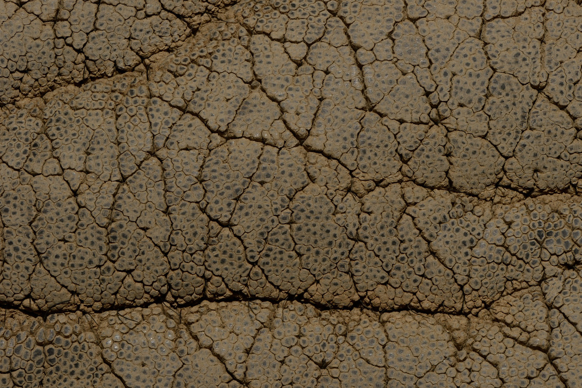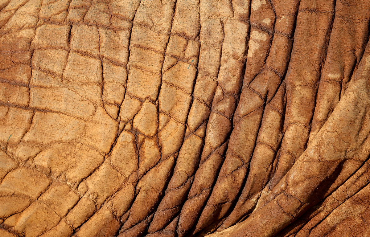 African elephants are known to love bathing, spraying and mud-wallowing, and since they have no sweat and sebum glands to keep their skin moist and supple, the tiny crevices trap and hold on to water and mud, helping to regulate body temperature.