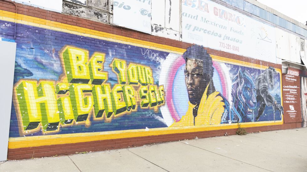 At 89th Street and Commercial Avenue in South Chicago, an earlier mural done by Statik features Chadwick Boseman, the late actor who starred in the first “Black Panther” movie.