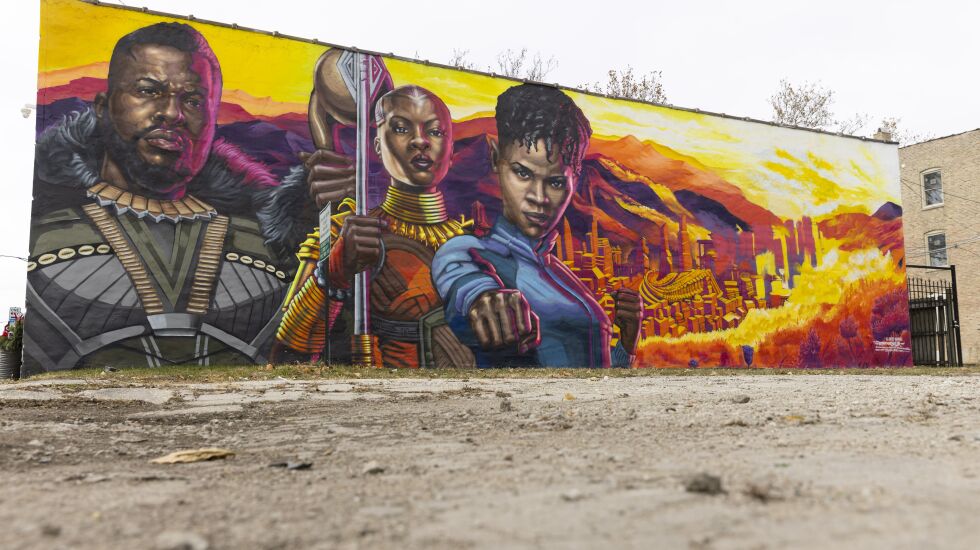 In time for the recent release of the series’ second installment, “Black Panther: Wakanda Forever,” a mural by Chicago artist Rahmaan Statik that features three of the film’s characters recently went up at 606 E. 61st St. in Woodlawn.