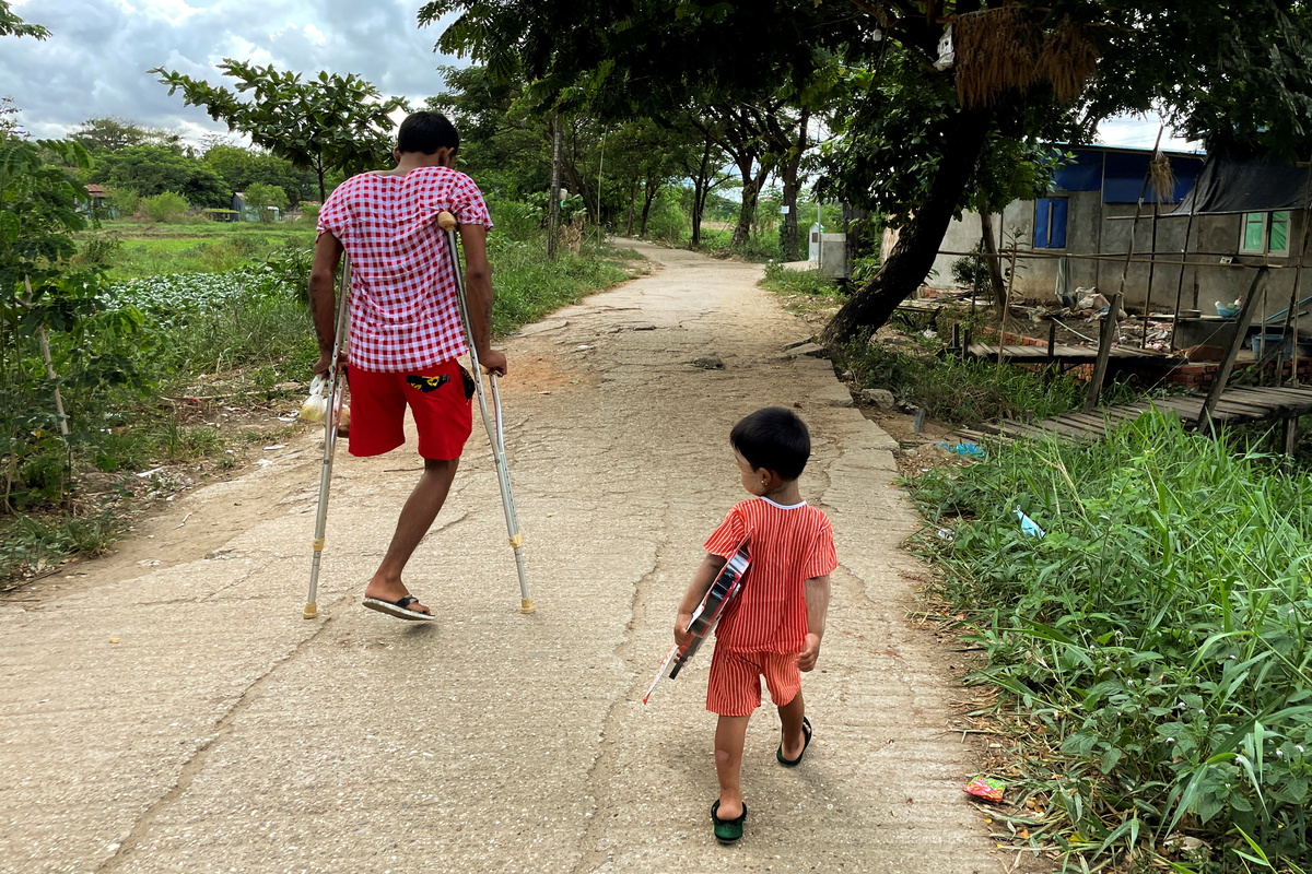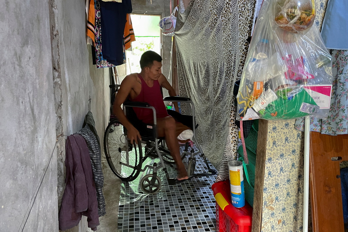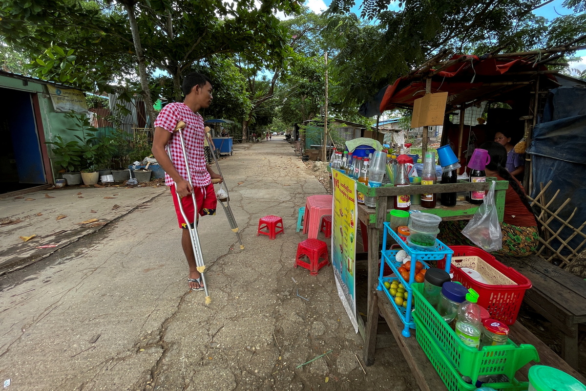 Ko Phyo has been learning to become mobile in a wheelchair in his three-room home and uses crutches when outdoors to deal with the uneven roads and paths that run between the green fields of his Yangon township.