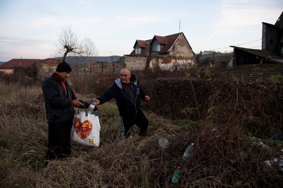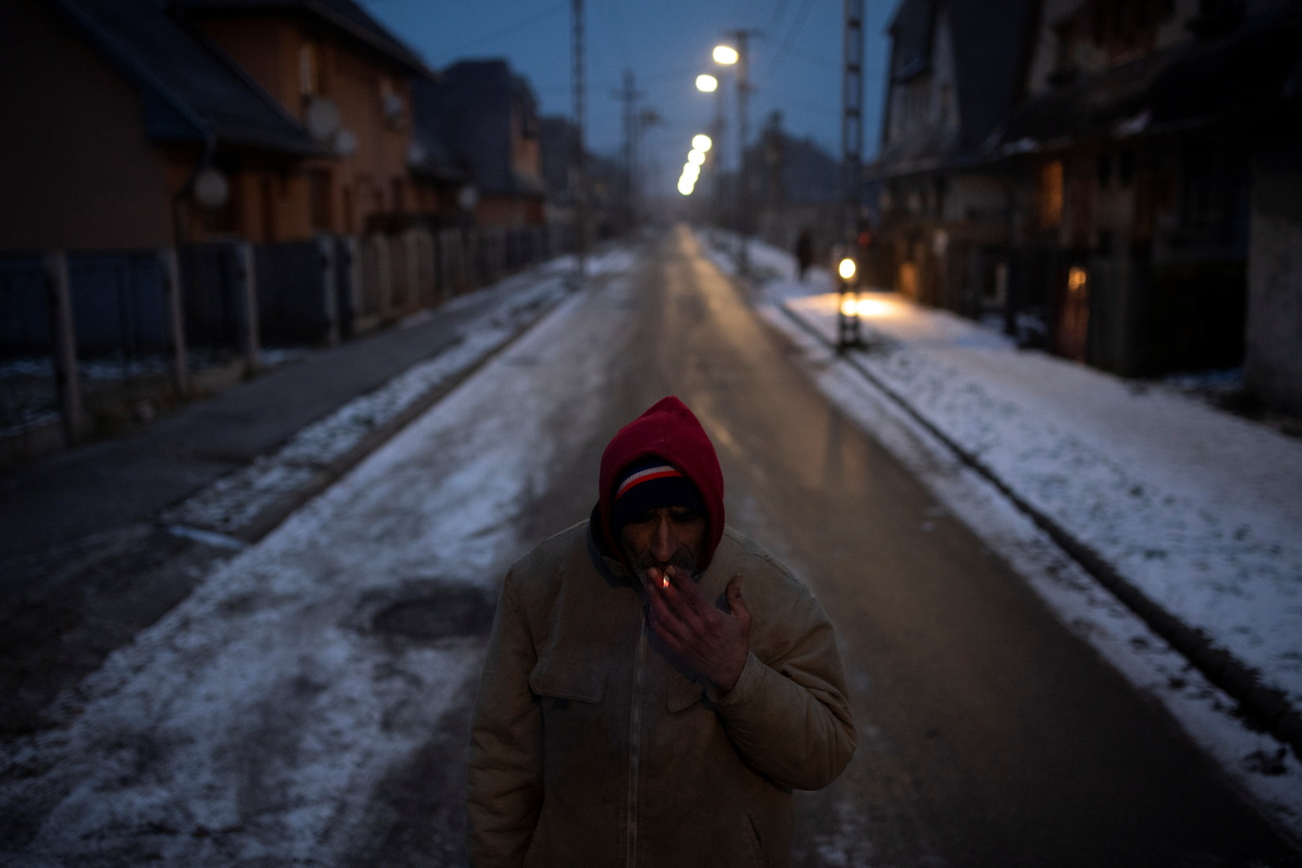 Zoltan Berki Sr., 55, and his family remember his father-in-law Endre Javorszki during his funeral in Ozd, Hungary, January 12, 2021. REUTERS/Marton Monus Renata Horvat and her two-year-old daughter Annabella Berki wait to be seen at the doctor's office in Ozd, Hungary, January 12, 2021. REUTERS/Marton Monus Discarded plastic from outside is placed into a fire to create heat in Ozd, Hungary, December 6, 2020. REUTERS/Marton Monus Bela Varga, 53, warms up by the fire at his home in Ozd, Hungary, December 6, 2020. REUTERS/Marton Monus Zoltan Berki Sr, 55, and his friend Bela Varga, 53, drink wine together at Varga's home in Ozd, Hungary, December 6, 2020. REUTERS/Marton Monus Zoltan Berki Sr, 55, and Bela Varga, 53, look for discarded plastic in Ozd, Hungary, December 6, 2020. To Zoltan Berki Sr. pollution means chest pain and coughs, but cold is a more imminent danger. "We'll dig down here, one shovels, the other picks, we collect what we find and take it home to burn," Berki said. "They heat up nicely, and we can't afford to buy anything." REUTERS/Marton Monus Bela Varga, 53, separates soil from small pieces of coal that he found in Ozd, Hungary, December 6, 2020. REUTERS/Marton Monus Bela Varga, 53, smokes a cigarette in front of his home in Ozd, Hungary, December 6, 2020. REUTERS/Marton Monus Smoke rises from chimneys in Borsodnadasd, Hungary, December 6, 2020. REUTERS/Marton Monus A window looks out from the remains of an abandoned steel factory in Ozd, Hungary, October 19, 2020. REUTERS/Marton Monus Zoltan Berki Sr, 55, chats to his daughter-in-law Renata Horvat at Horvat's home in Sajonemeti, Hungary, September 13, 2020. REUTERS/Marton Monus SENSITIVE MATERIAL. THIS IMAGE MAY OFFEND OR DISTURB Renata Horvat breastfeeds her son Manasse Berki as he is baptised in Ozd, Hungary, October 10, 2020. REUTERS/Marton Monus Zoltan Berki, 28, plays with his daughters in Sajonemeti, Hungary, September 13, 2020. Berki usually wakes up before dawn, as his five small children sleep next door, to feed the old iron furnace that stands in a wall cavity to warm up both rooms. This is the only part of his house that he can afford to heat during winter. "Firewood is expensive," Berki said one recent afternoon, as his family played around him, crammed into one small room. "Either I buy wood or food. So I go to the forest, or the junkyard, and if we find plastic or rubber we burn that. "But not during the day or the neighbours can see, and you can also smell it. We throw the rubber and the plastic bottles and such things on at night." REUTERS/Marton Monus Relatives and friends attend the baptism of Manasse Berki in Ozd, Hungary, October 10, 2020. REUTERS/Marton Monus Dzsamila Berki, 8, daughter of Zoltan Berki and Renata Horvat, plays in the kitchen at her home in Sajonemeti, Hungary, September 13, 2020. REUTERS/Marton Monus Fog rolls over Dedestapolcsany, Hungary, January 5, 2020. REUTERS/Marton Monus Kalman Cinka, 30, a factory worker, drinks with his family before his godson Manasse Berki's baptism in Ozd, Hungary, October 10, 2020. REUTERS/Marton Monus The remains of an abandoned steel factory stand in Ozd, Hungary, October 19, 2020. REUTERS/Marton Monus A man stands inside a steel factory in Ozd, Hungary, October 19, 2020. REUTERS/Marton Monus Houses stand in Miskolc, Hungary, January 5, 2020. REUTERS/Marton Monus