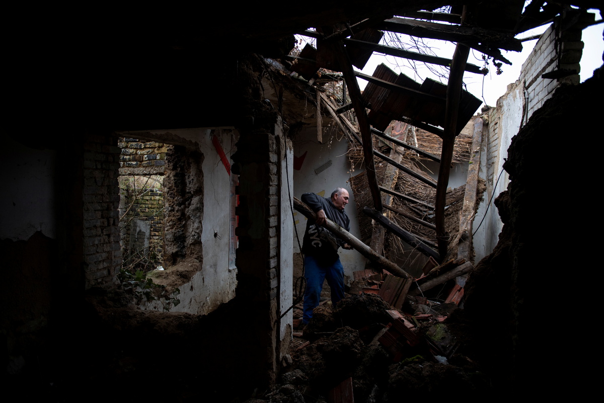 Zoltan Berki Sr, 55, searches for firewood in an old abandoned house in Ozd, Hungary, December 19, 2020. To Zoltan Berki Sr. pollution means chest pain and coughs, but cold is a more imminent danger. "We collect what we find and take it home to burn," Berki said. "They heat up nicely, and we can't afford to buy anything." REUTERS/Marton Monus