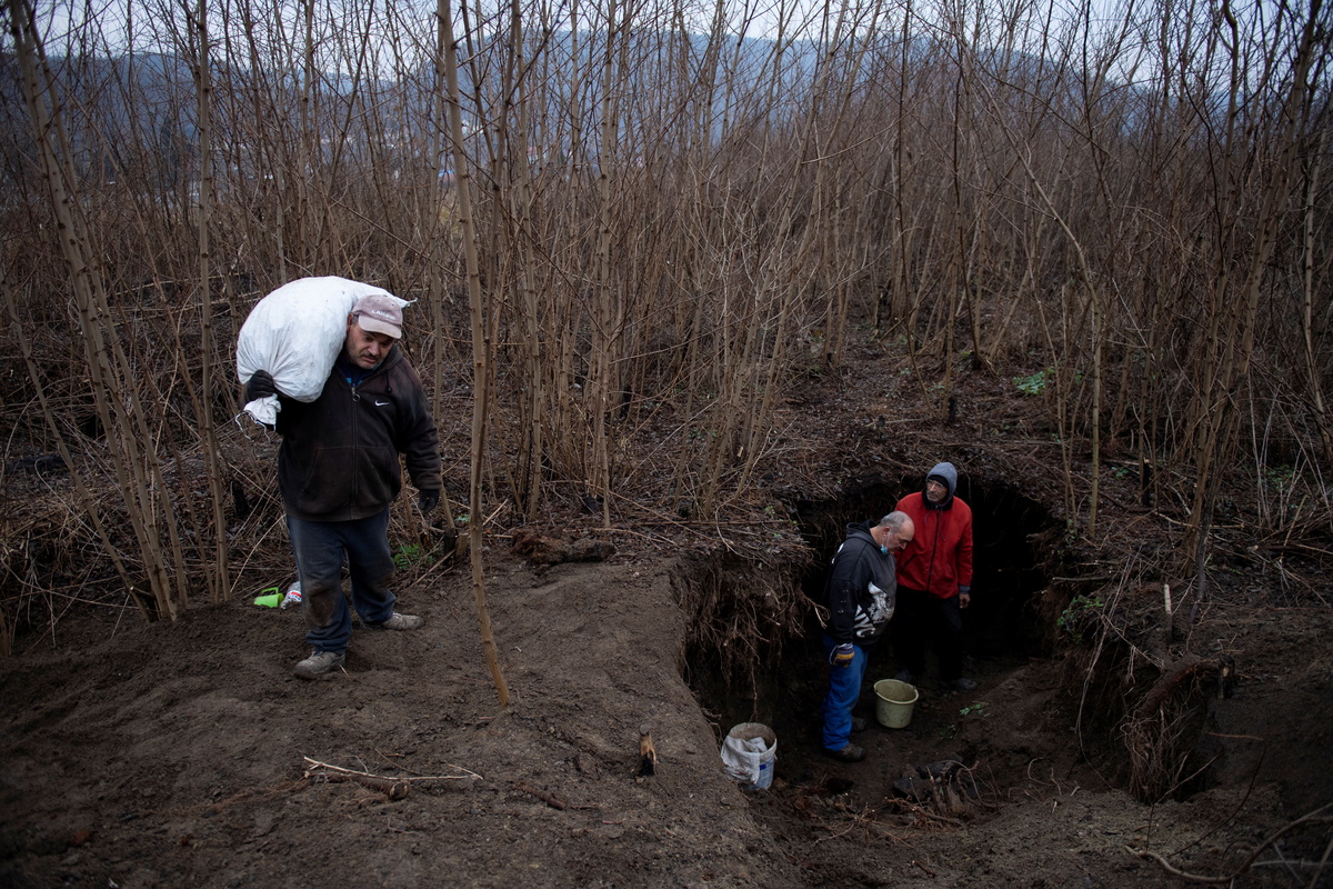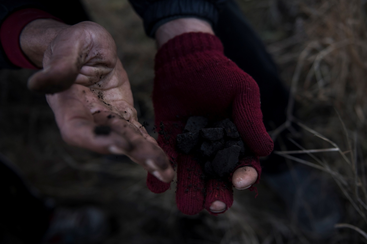 On Sunday, the elder Berki went to dig up leftover coal by hand - a common sight in winter.