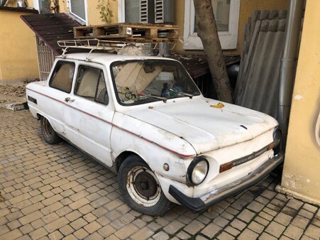 She delayed gratification though by first showing how Jewish the city was. One CBD street is called Hebraica. Old synagogues survived as had the Greek Church where one of the first pogroms began in 1871. Nearby was the courtyard where Babel lived which had a clapped-out Trabant parked on one side, being used as a storage container.