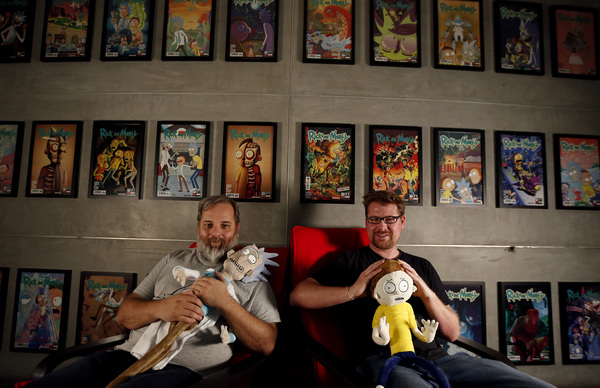 It quickly becomes clear that a lot of the real-life quirks they possess have filtered into the series. Harmon points to Roiland's pop culture collection. His office wall is adorned in action figures from "Ren & Stimpy," "Tales From the Cryptkeeper," "Bucky O'Hare," "The Crash Test Dummies," all preserved in their original packaging. The shelves are lined with books, comics, art and an autographed Claudia Black figure from "Farscape." "For someone as capricious as him, he obsesses about collectibles," Harmon says. "He's worried about squandering money on a wasted opportunity. 'Oh, this Nintendo is only $8 now, it's gonna be worth $12 next year, so I'm gonna go buy 90 of them,' which is not only a thing Roiland has done, but it's also a direct scenario from the episode 'Total Rickall.'"