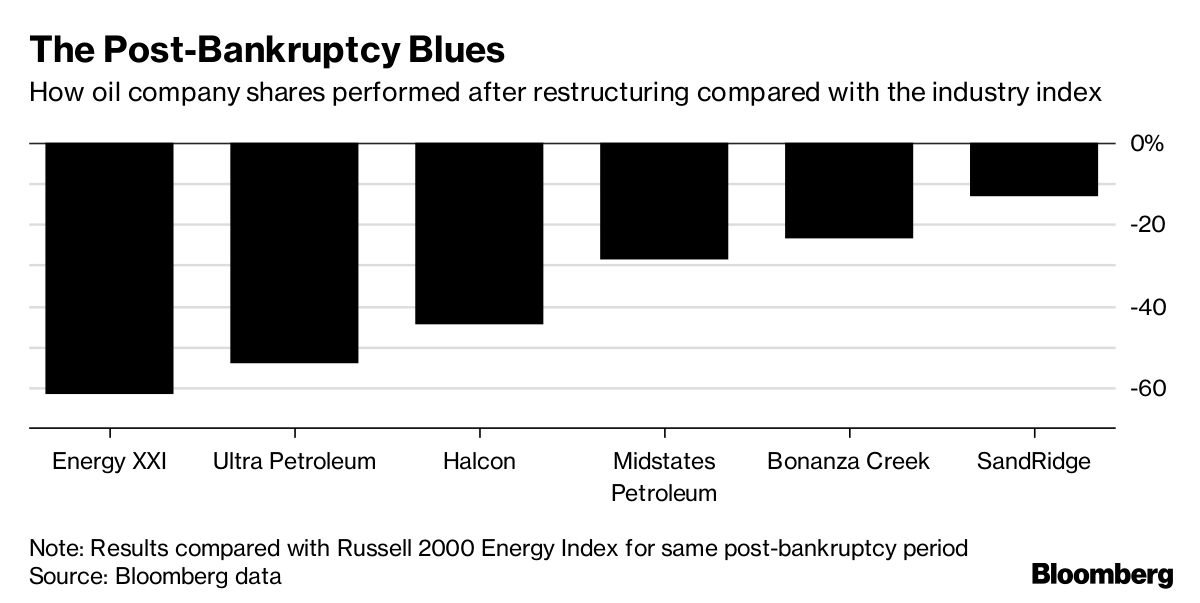 “The bottom line is a lot of these companies didn’t have very good assets to begin with," said Leo Mariani, an analyst at NatAlliance Securities in Austin, Texas. “You can go through bankruptcy and wipe away debt and that’s all well and good, but the assets they ended up with are still not very attractive."