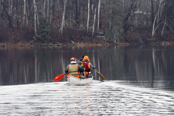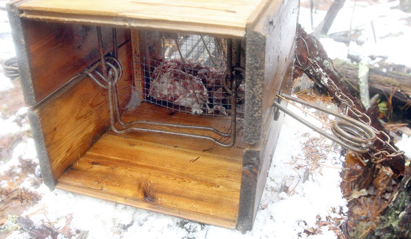 Most trappers these days drive their traplines, hopping out to check a couple of sets here, a couple there. Chapin and Hertle park once and walk all morning checking a half-dozen traps. One of them backtracks and gets into a canoe, paddling across a small lake to meet the other and to check their final four traps. If the lake is frozen and the snow is deep, they might cross the lake by snowmobile and check traps on snowshoes.