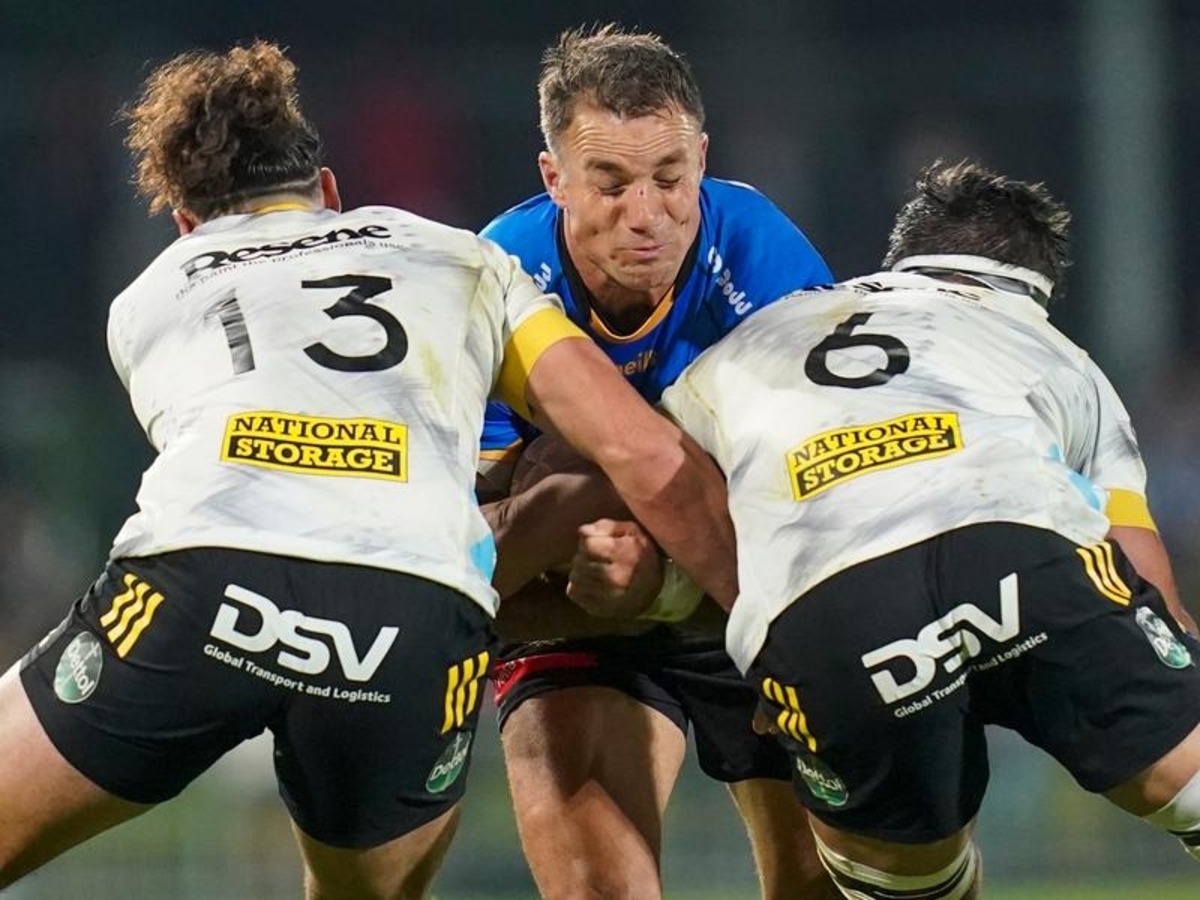 The lead ballooned to 19-6 in the 38th minute when Hurricanes prop Tyrel Lomax ripped the ball from Tim Anstee's grasp to set up a try for Du'Plessis Kirifi.