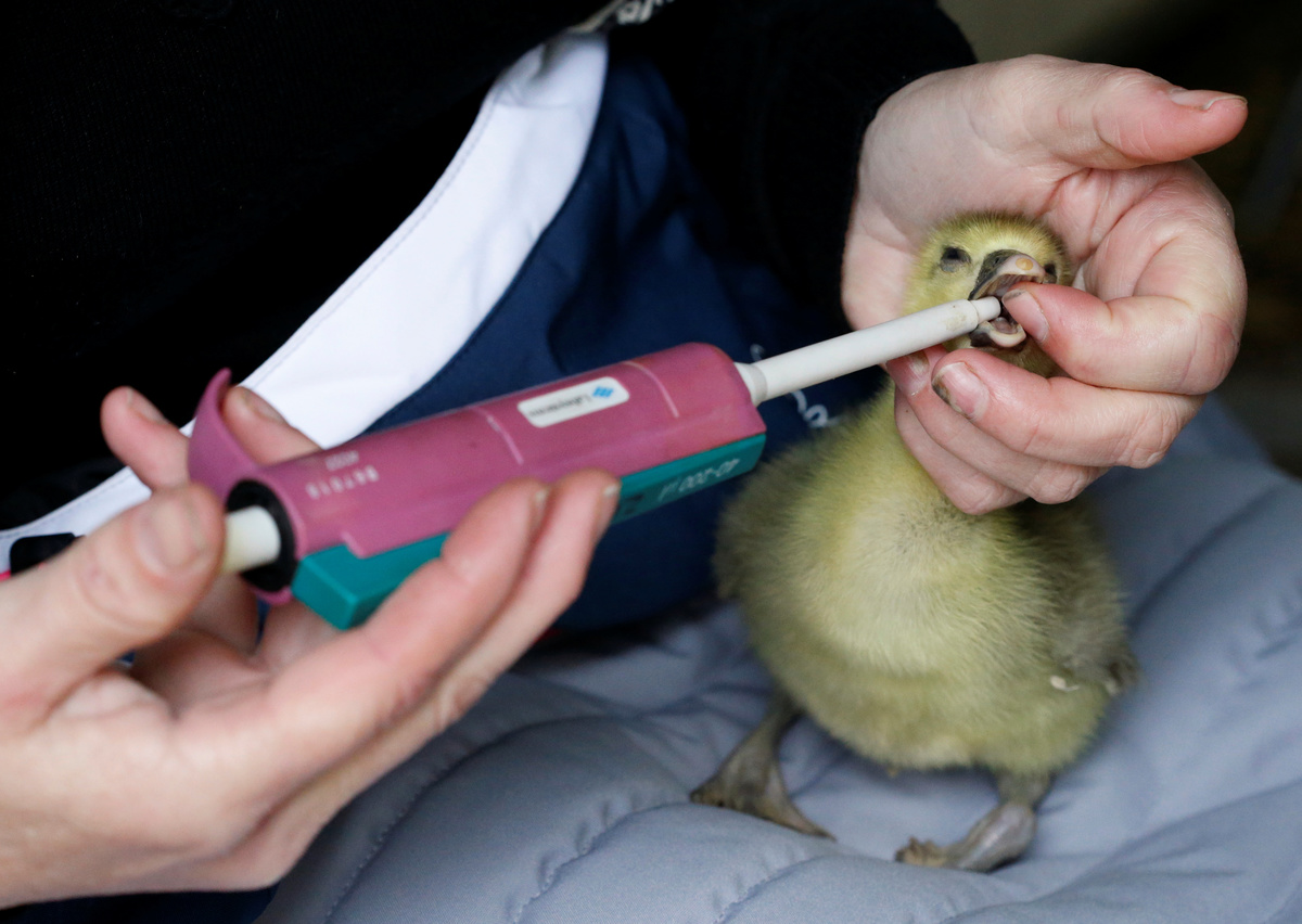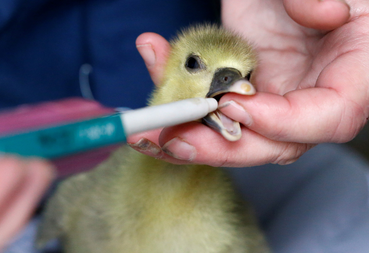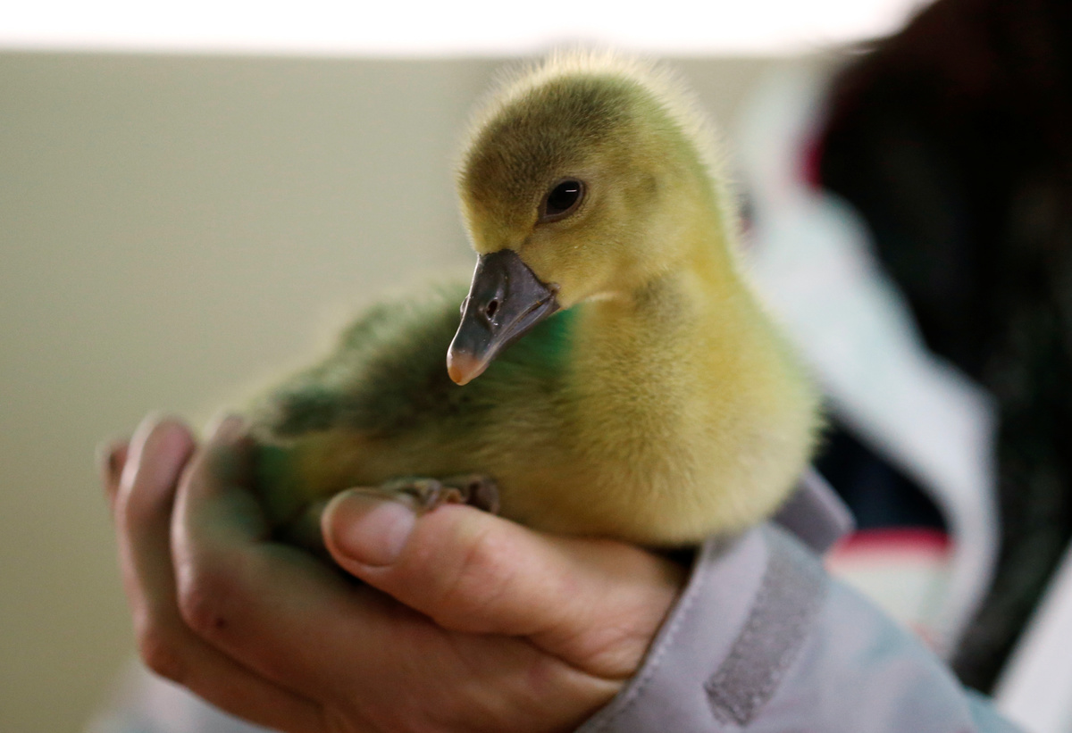 A geese grower farmer gives a dose of serum containing the bacteria to stimulate fat growth in liver to a two-day-old gosling to produce a "naturally fatty" foie gras, in Bazillac, France, December 3, 2019. REUTERS/Regis Duvignau