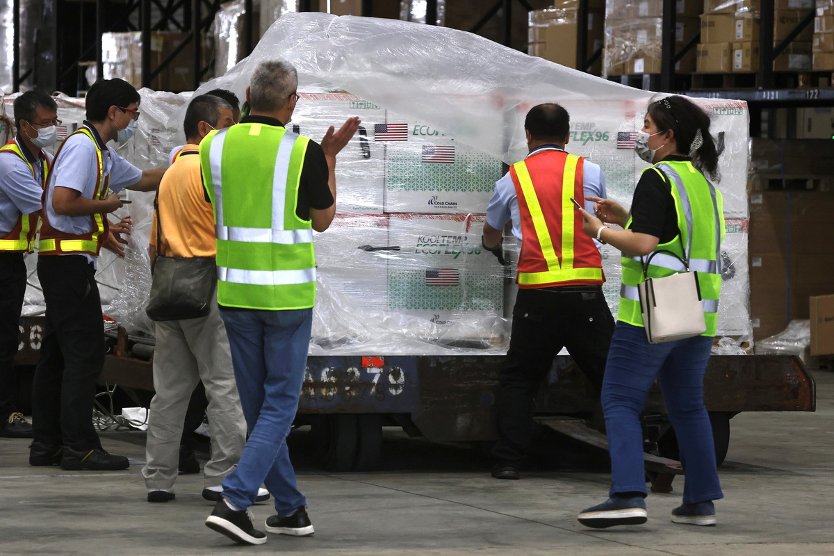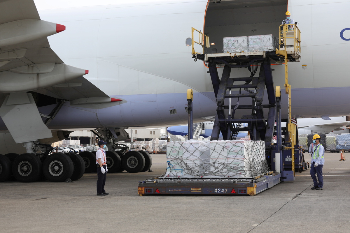 A China Airlines Boeing 777 freighter carrying the vaccines landed at Taoyuan airport outside of Taipei late afternoon, greeted on the tarmac by Health Minister Chen Shih-chung and the top U.S. diplomat in Taiwan, Brent Christensen.