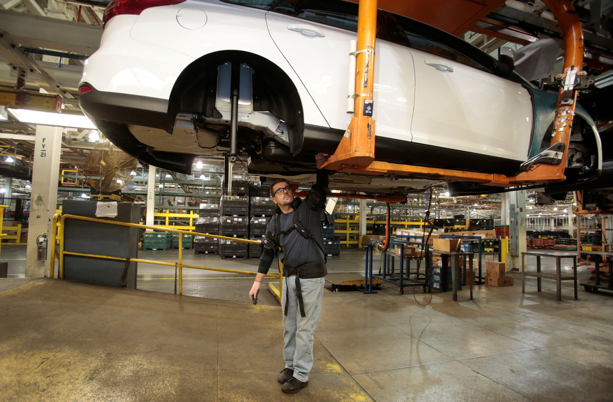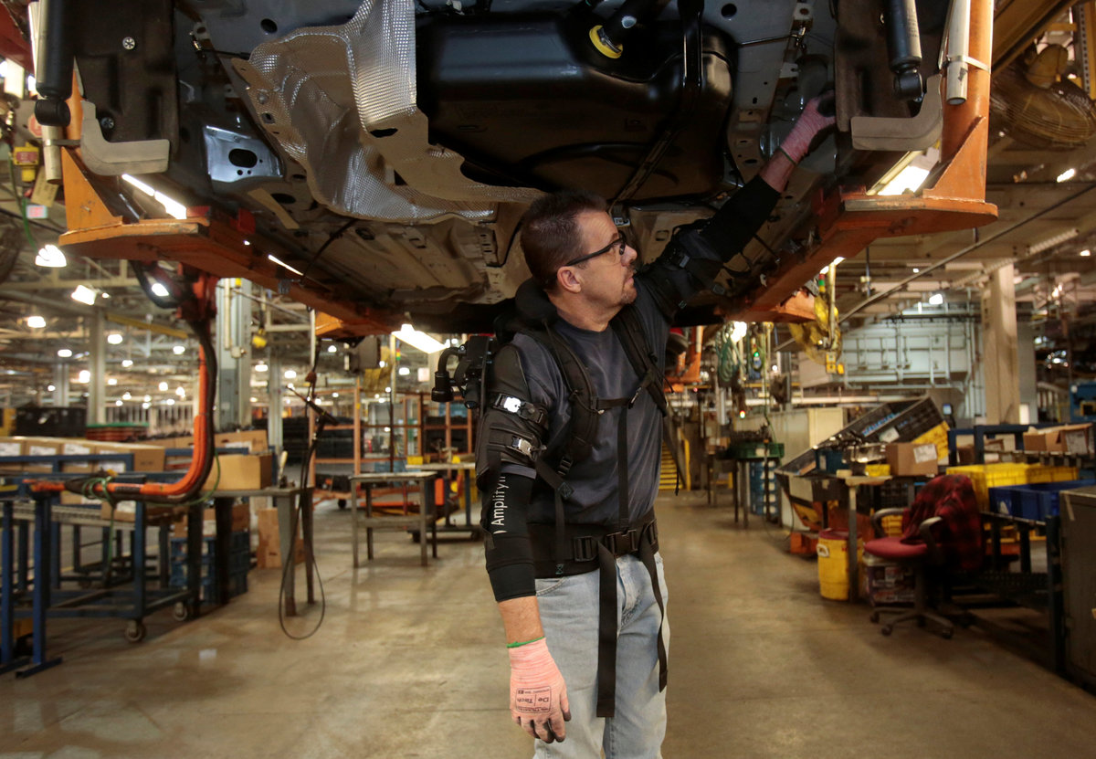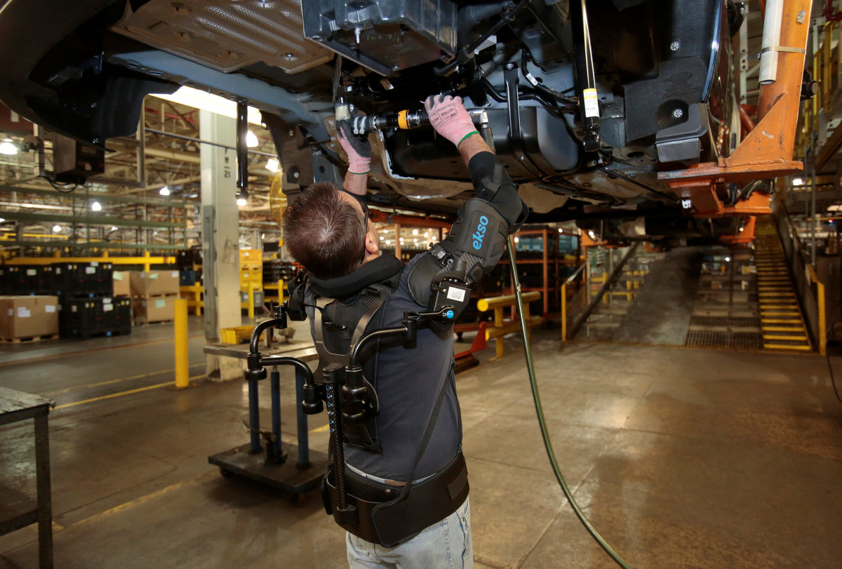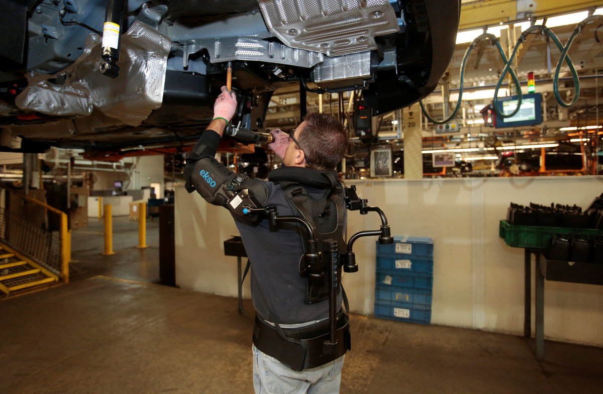The U.S. automaker said on Thursday that workers at two U.S. factories are testing upper-body exoskeletons developed by Richmond, California-based Ekso Bionics Holdings Inc <EKSO.O>, which are designed to reduce injuries and increase productivity.
