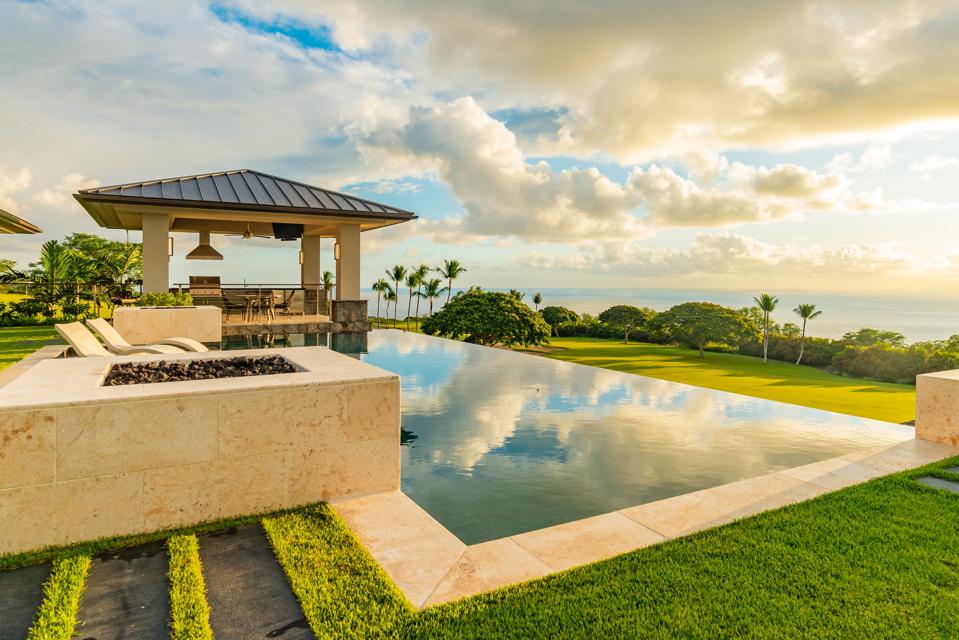 This estate in the private community of Hokulia, located along the Kona Coastline on Hawaii's Big Island, sits along the invitation-only club's Jack Nicklaus Signature 18-hole golf course. Along with the links, it has stunning ocean views.