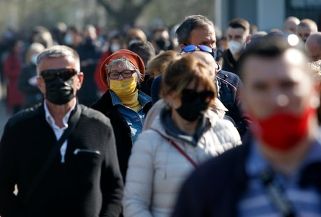 Long lines of Bosnians Montenegrins and North Macedonians — often entire families — formed in front of the main vaccination center in the Serbian capital, with police keeping watch.