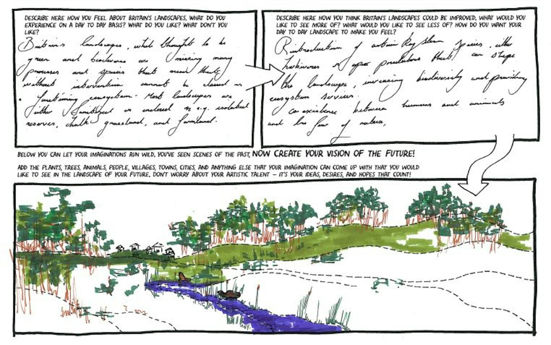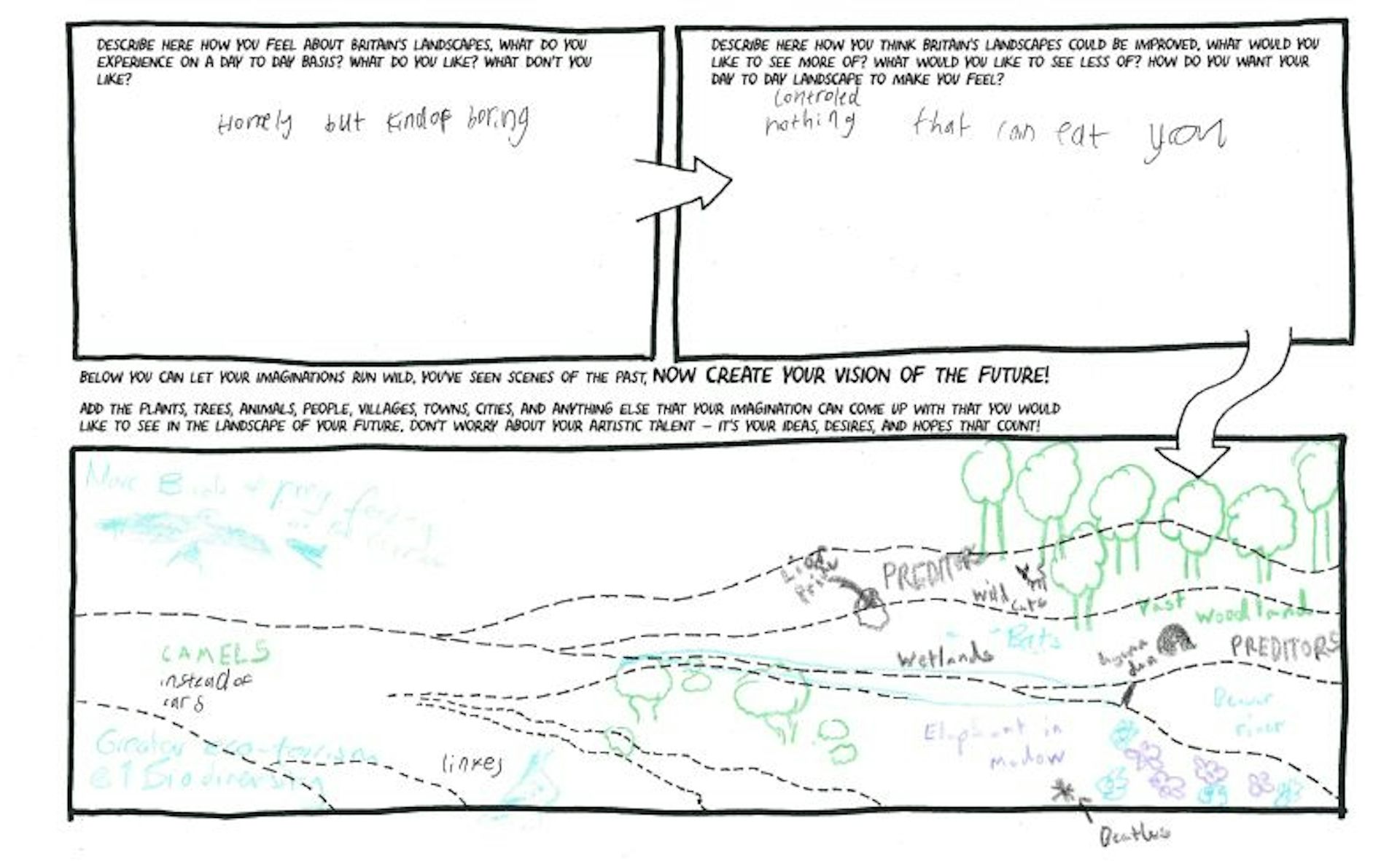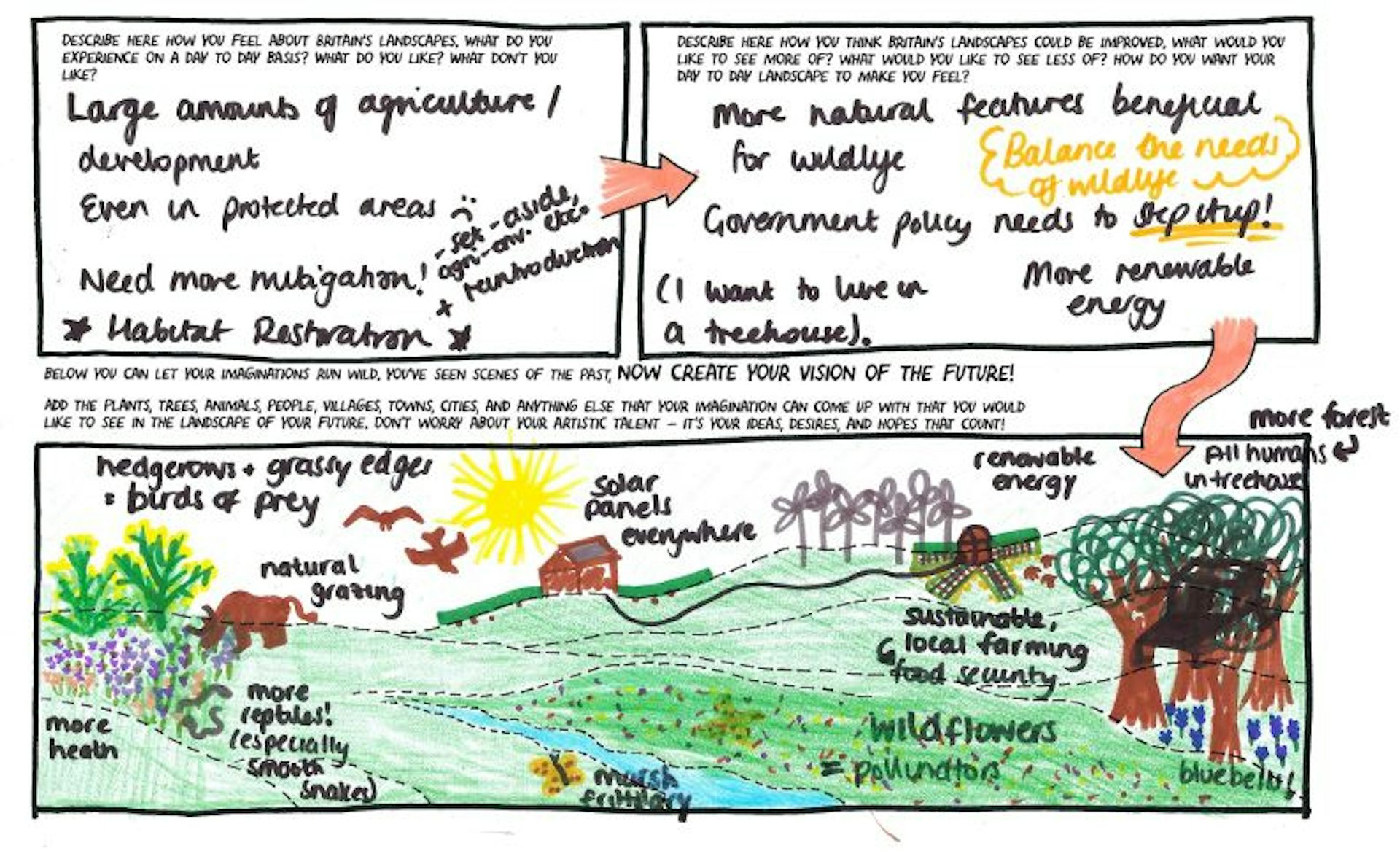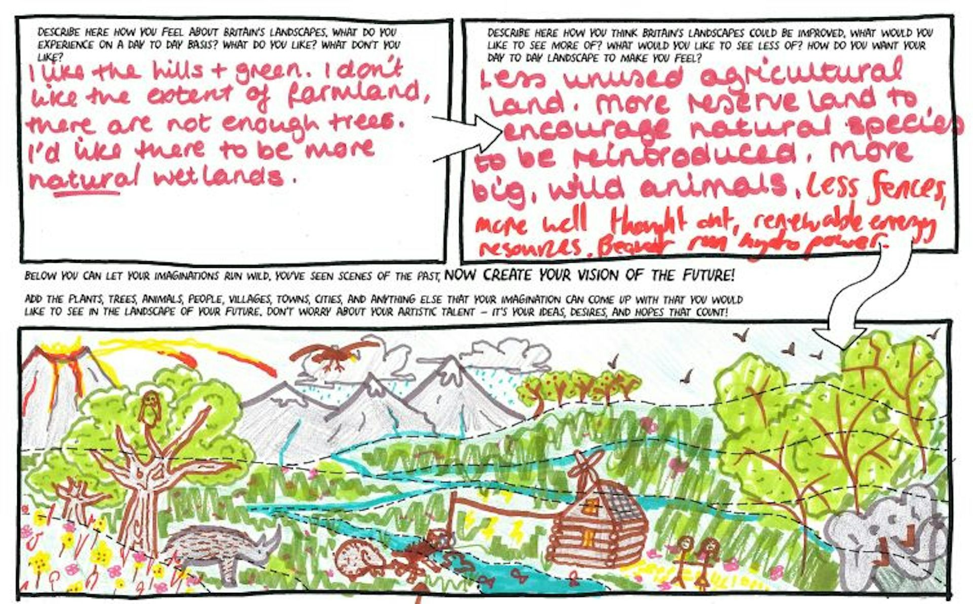 People between the ages of ten and 25 years old were then invited to share their views on what they like and don’t like about their landscapes today, and then drew visions of the natural world they would like to see in the future.