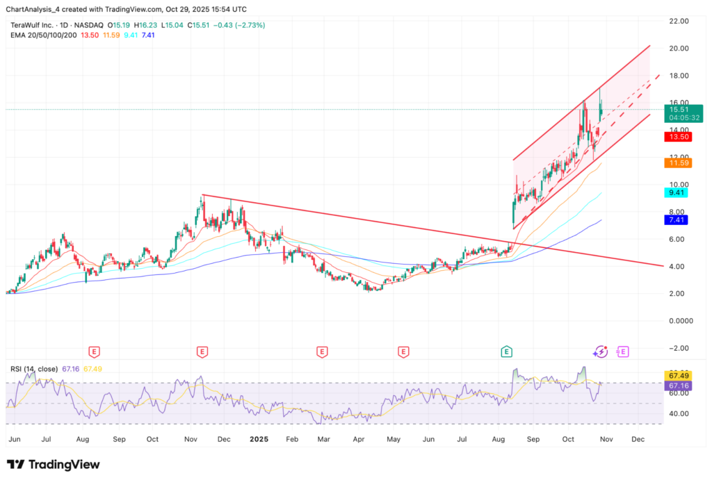 TeraWulf stock remains in a strong ascending channel that began with an August breakout above its year-long downtrend.