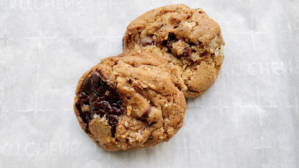 He continued, “Finally, after ten years of marriage and cookie analysis, I’ve landed on what I think is my favorite chocolate chip cookie recipe by incorporating my favorite aspects of the recipes I’ve tried. It’s not too fussy (though the dough does require a timeout in the fridge), not too sweet, and always results in emphatic sighs of delight after the first gooey bite.”