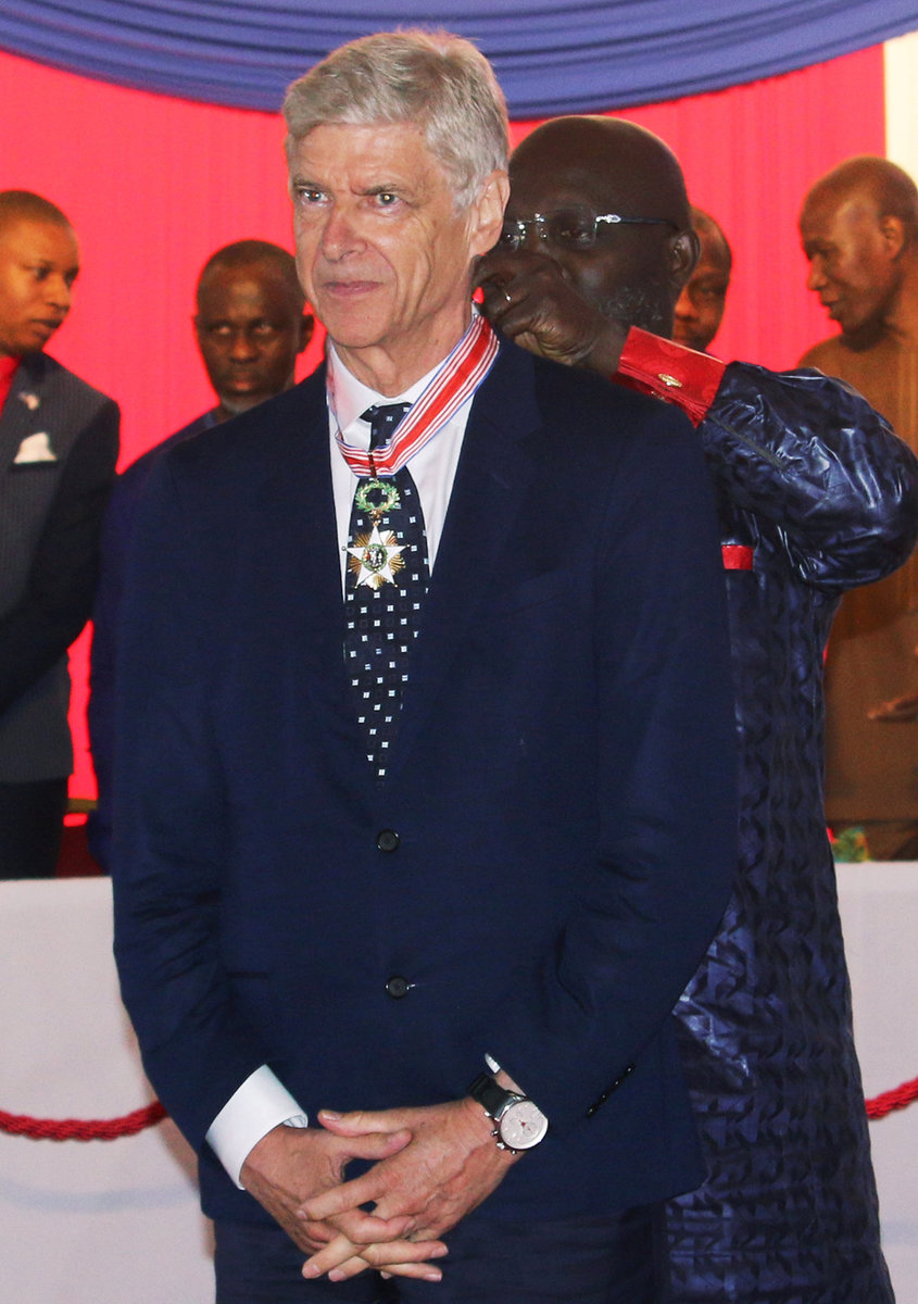 Thousands of spectators clapped and cheered as Wenger received his medal in a hall at the national stadium adorned with the national red, white and blue. Thousands more listened to the ceremony on the radio in the stadium, once a shelter for people displaced by a civil war that ended fifteen years ago.