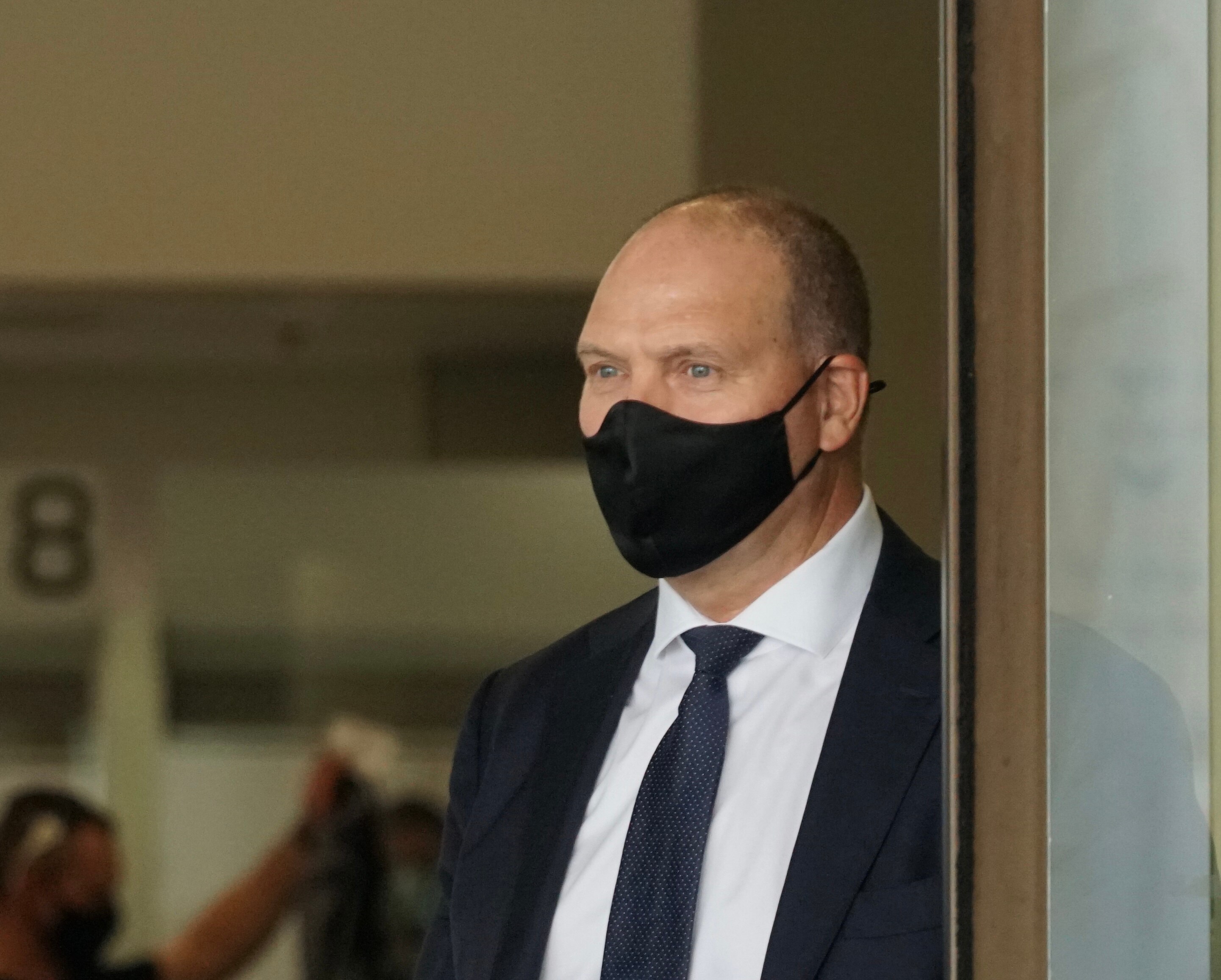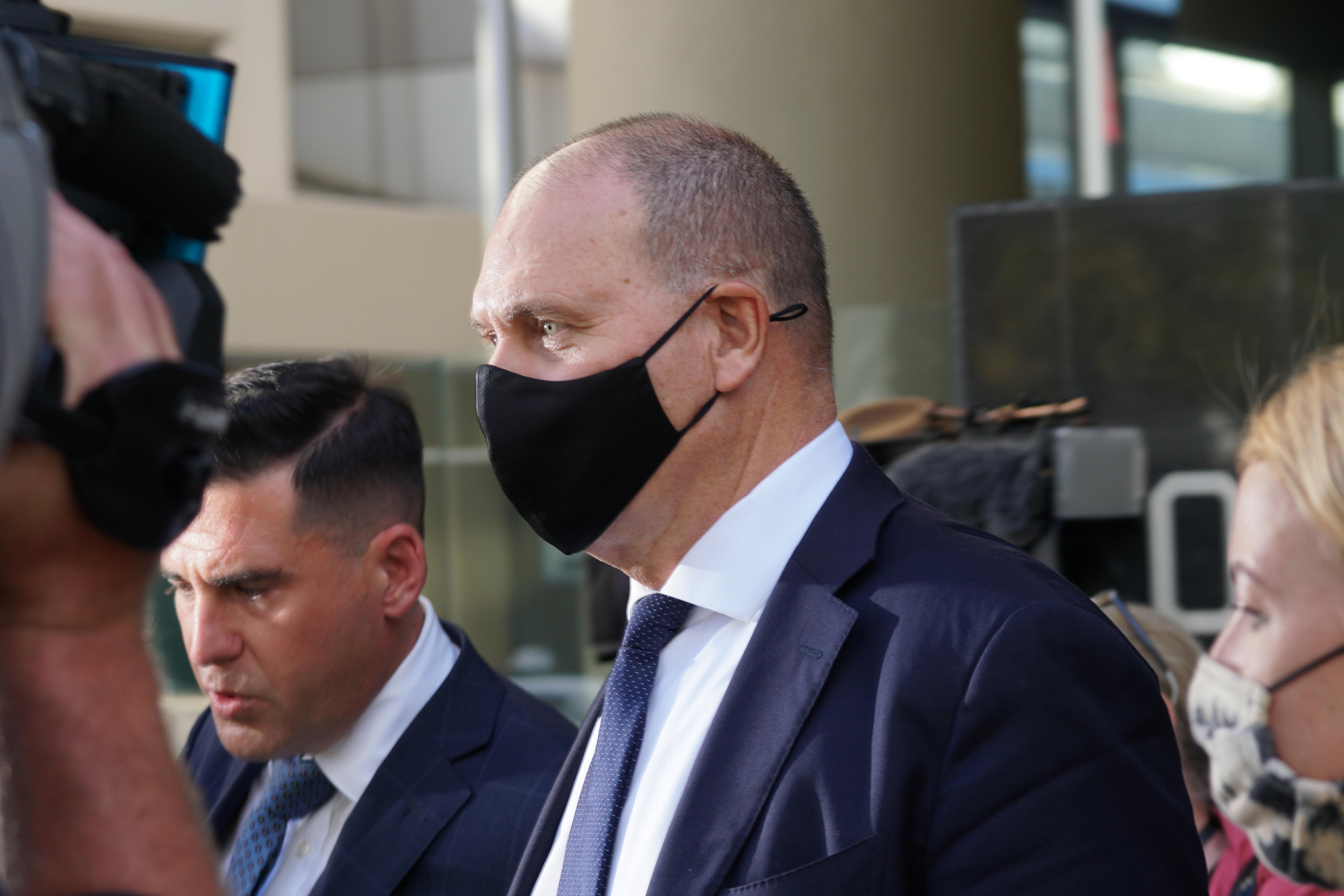 Neville Power leaves court after admitting he breached WA's COVID border laws. (ABC News: Jon Sambell)