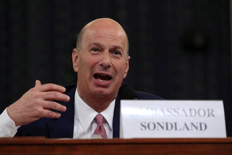 The lawsuit alleges that the administration told Mr Sondland that it “appreciated his testimony” but “wanted to purge everyone remotely connected” to the impeachment proceedings.