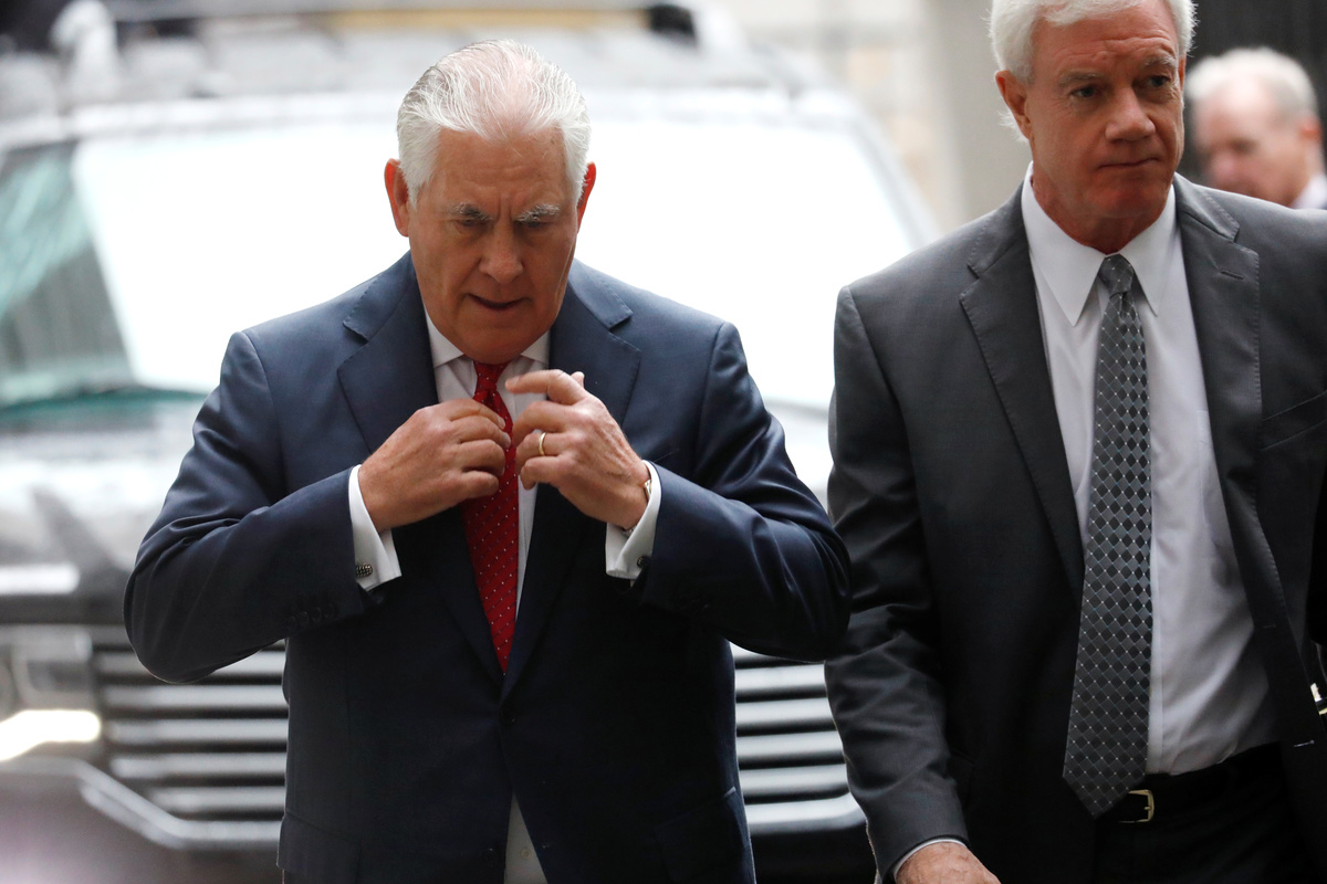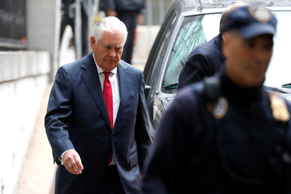 Former Exxon Mobil CEO and Former U.S. Secretary of State Rex Tillerson departs New York State Supreme Court after testifying as an Exxon witness as part of a trial in a lawsuit by New York's attorney general accusing the oil company of misleading investors about the risks of climate change regulations to its business in Manhattan, New York, U.S., October 30, 2019. REUTERS/Mike Segar