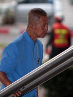 PAD leader Chamlong Srimuang, 83, arrives at the Criminal Court yesterday. Tawatchai Kemgumnerd