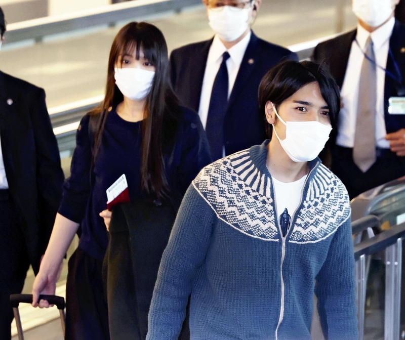 The Komuros left the condominium in Shibuya Ward, Tokyo, where they had been staying since their marriage after 8 a.m. Sunday. After arriving at Haneda Airport, they bowed to about 100 members of the press without making any remarks. They then proceeded to their boarding gate.