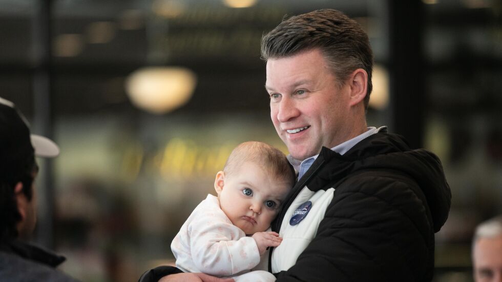 Bill Conway’s daughter Birdie ran into his arms just as he declared victory in the newly drawn 34th Ward that now encompasses the West Loop, Fulton Market and Greektown Tuesday night.