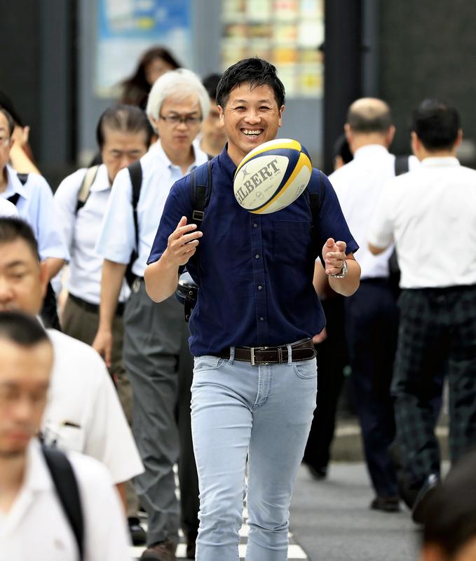 Uchiyama plans to commute to and from work with a rugby ball until the end of the tournament on Nov. 2, he said.