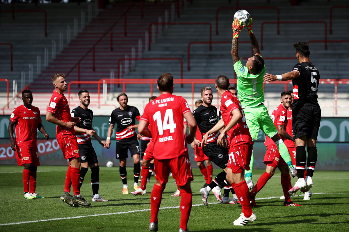 Soccer Football - Bundesliga - 1. FC Union Berlin v Fortuna Dusseldorf - Stadion An der Alten Forsterei, Berlin, Germany - June 27, 2020 Union's Rafal Gikiewicz in action, following the resumption of play behind closed doors after the outbreak of the coronavirus disease (COVID-19) Maja Hitij/Pool via REUTERS DFL regulations prohibit any use of photographs as image sequences and/or quasi-video