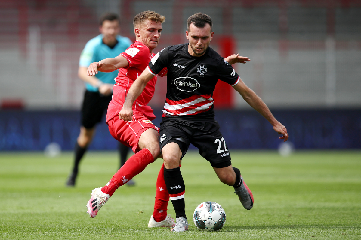Soccer Football - Bundesliga - 1. FC Union Berlin v Fortuna Dusseldorf - Stadion An der Alten Forsterei, Berlin, Germany - June 27, 2020 Fortuna Dusseldorf's Kevin Stoger in action with Union's Grischa Promel, following the resumption of play behind closed doors after the outbreak of the coronavirus disease (COVID-19) Maja Hitij/Pool via REUTERS DFL regulations prohibit any use of photographs as image sequences and/or quasi-video