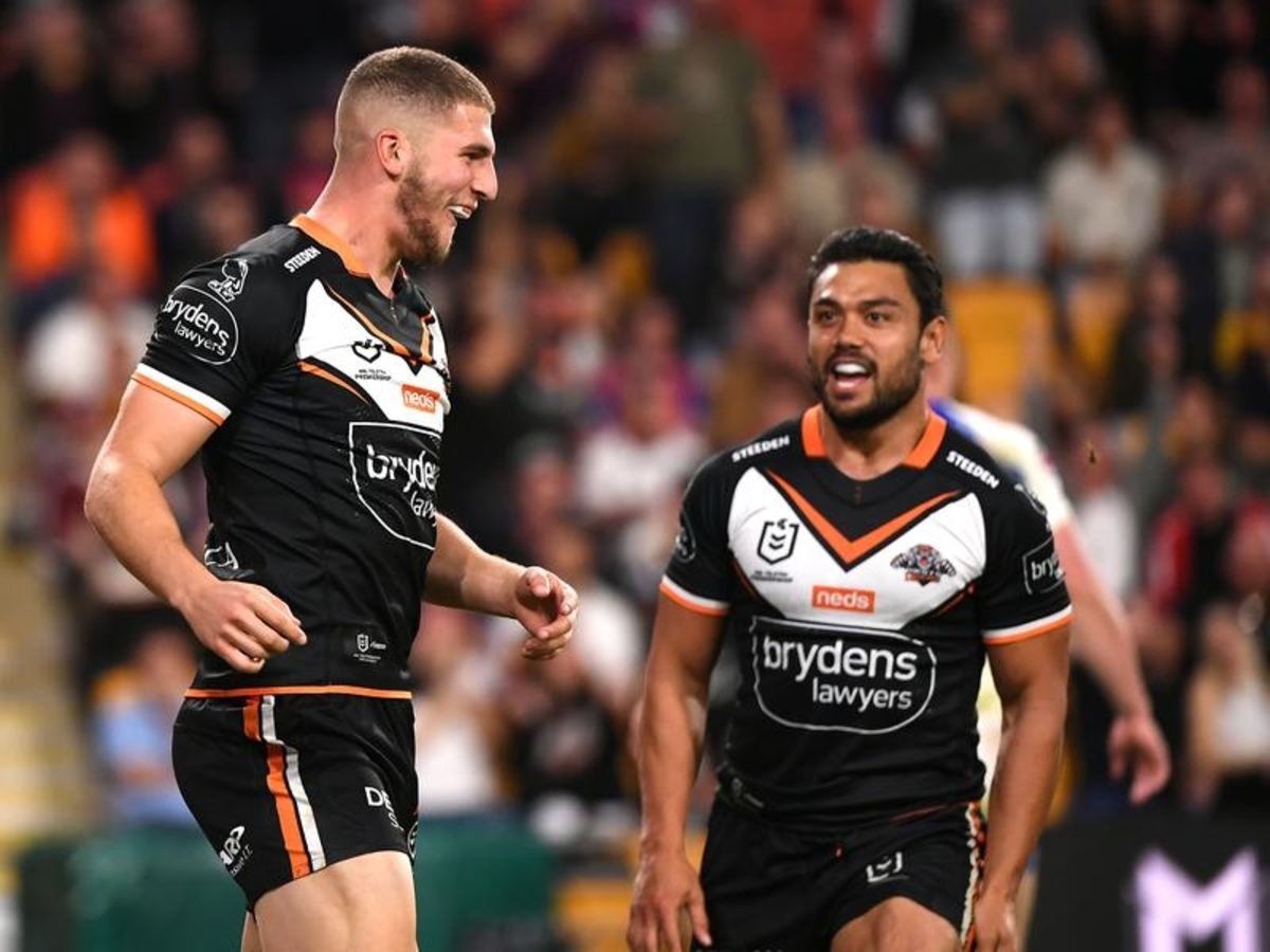 Mbye, Brooks and Doueihi combined to set up or score five of the Tigers' first six tries, the Knights without a look at the opposition's line inside the first 19 minutes.