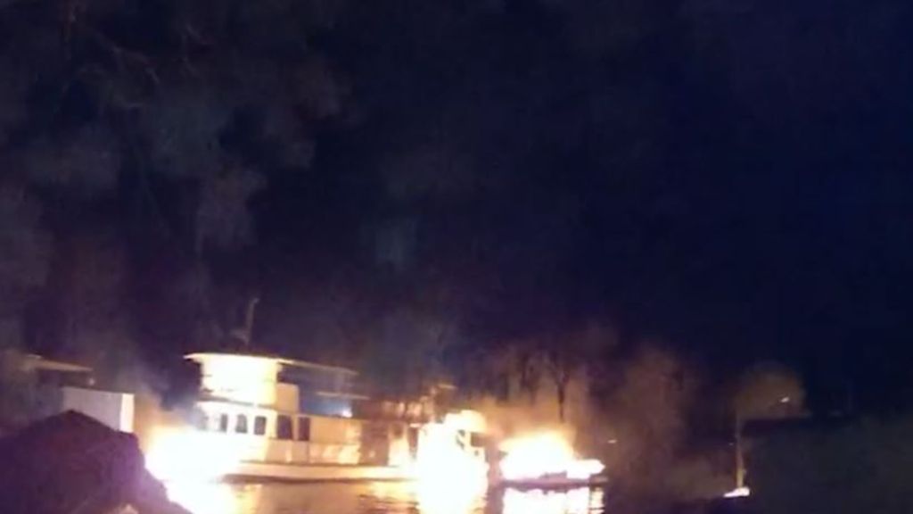 The vessels had been tied to a jetty but slipped from their moorings when the flames burnt through the ropes.