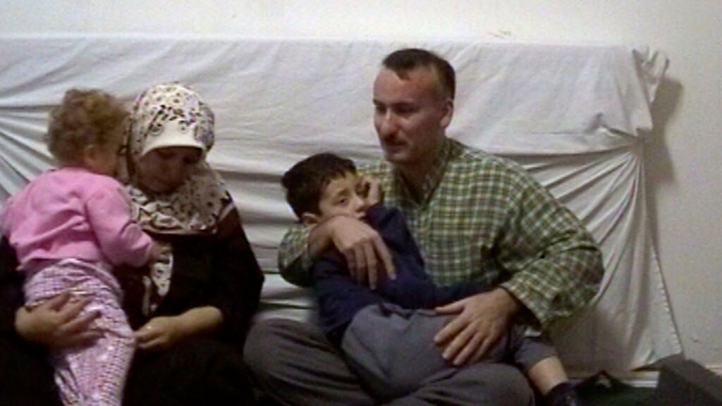 "Do they think we're animals?" cries the anguished father cradling his six-year-old son in his arms.