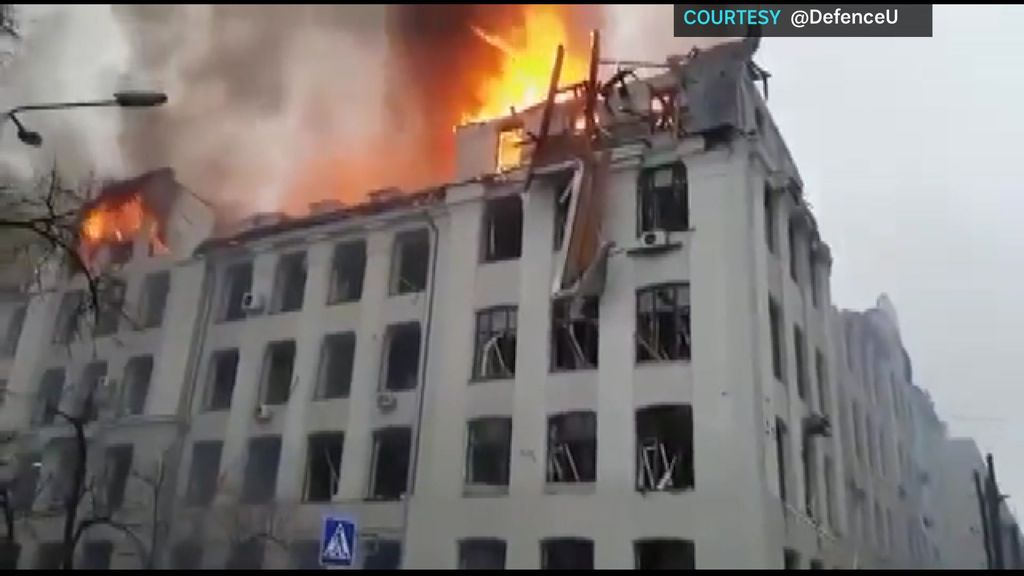Video posted to social media showed a police building in Kharkiv had also been hit by a missile attack.