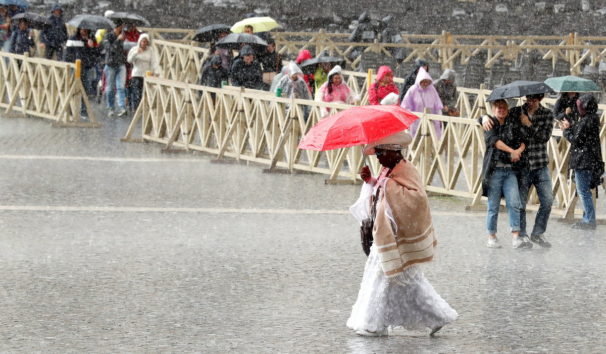 A couple walk on a catwalk in a flooded Saint Mark Square during a period of seasonal high water in Venice, Italy October 29, 2018 Reuters/Manuel SilvestriPeople walk in a flooded Saint Mark Square during a period of seasonal high water in Venice, Italy October 29, 2018 Reuters/Manuel SilvestriPeople walk in a flooded Saint Mark Square during a period of seasonal high water in Venice, Italy October 29, 2018 Reuters/Manuel SilvestriPeople walk in a flooded Saint Mark Square during a period of seasonal high water in Venice, Italy October 29, 2018 Reuters/Manuel SilvestriPeople walk on a catwalk in a flooded Saint Mark Square during a period of seasonal high water in Venice, Italy October 29, 2018 Reuters/Manuel SilvestriA woman shelters under an umbrella as she walks in St Peter's square at the Vatican, October 29, 2018. REUTERS/Stefano RellandiniA broken tree due a strong winds is seen downtown Rome, Italy, October 29, 2018. REUTERS/Stefano RellandiniPeople walk in a flooded Saint Mark Square during a period of seasonal high water in Venice, Italy October 29, 2018 Reuters/Manuel SilvestriA woman wears a rain cover as she sits a colonnade in St Peter's square at the Vatican, October 29, 2018. REUTERS/Stefano Rellandini