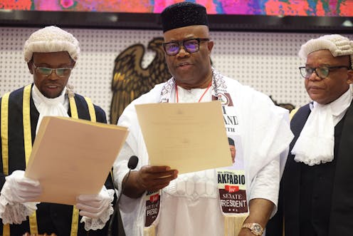 Nigeria’s National Assembly – the 10th since independence – was inaugurated on 13 June 2023. It has two arms: the Senate and the House of Representatives. The 109 senators and 360 representatives were elected on 25 February 2023. Godswill Akpabio was elected Senate president and Tajudeen Abass House of Representatives speaker.