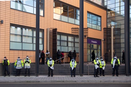 Supporters of the defendants had planned to hold a demonstration outside Bristol Magistrates Court but following a warning by the police, the protest was instead held online.