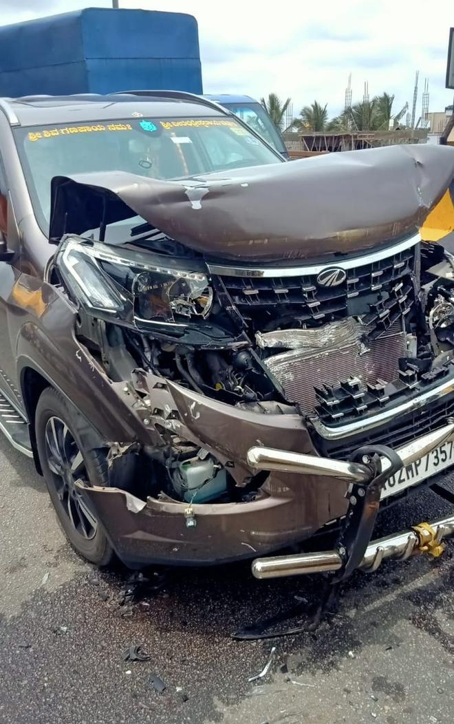 The speeding car that was moving towards Tumakuru failed to notice the patrolling vehicle, lost control, and hit the divider in a bid to avoid collision. Other vehicles following the car screeched to a halt and collided with each other. In the melee, an elderly woman sustained minor injuries while others escaped unhurt. As many as four cars were damaged in the serial accident, but no one has filed a complaint so far, a police officer said.