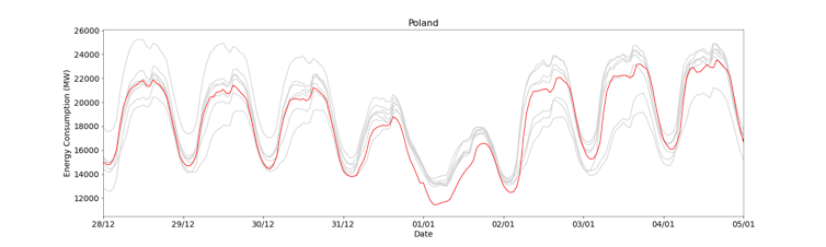 Electricity demand is influenced by things like the time of day, the day of the week and socio-economic factors like the COVID pandemic or the war in Ukraine. The weather also makes a difference. For example, in Poland and the Netherlands demand was noticeably lower than average, especially since January 1 was a Sunday. The extent of the heatwave also meant countries could refill some of their winter gas reserves, or large batteries.