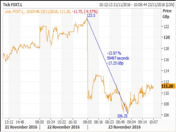 Foxtons shares plunged by more than 13 per cent in just an hour in early trading, after a briefing document on Monday indicated the fees will be banned.