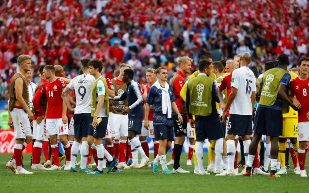 Denmark could have only been denied qualification had they lost to France and had Australia beaten Peru in the match being simultaneously played in Sochi.
