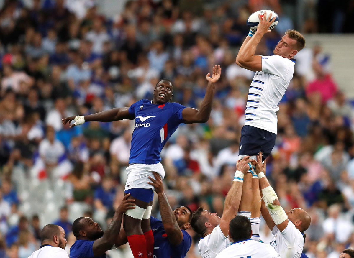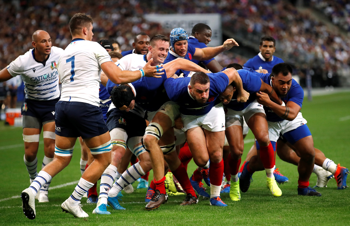 PARIS (Reuters) - France got their rugby World Cup preparations back on track by overpowering Italy, scoring seven tries in a flamboyant and sometimes chaotic 47-19 win at the Stade de France on Friday.