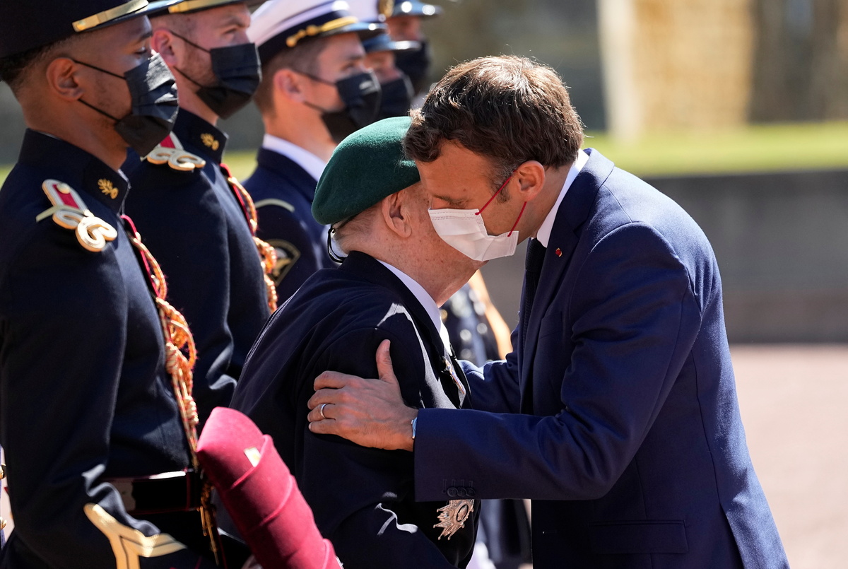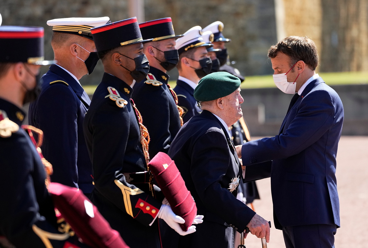 President Emmanuel Macron gave one of France's highest honours on Friday to Leon Gautier, last surviving member of the French commando unit that waded onshore on D-Day alongside allied troops to begin the liberation of Europe.