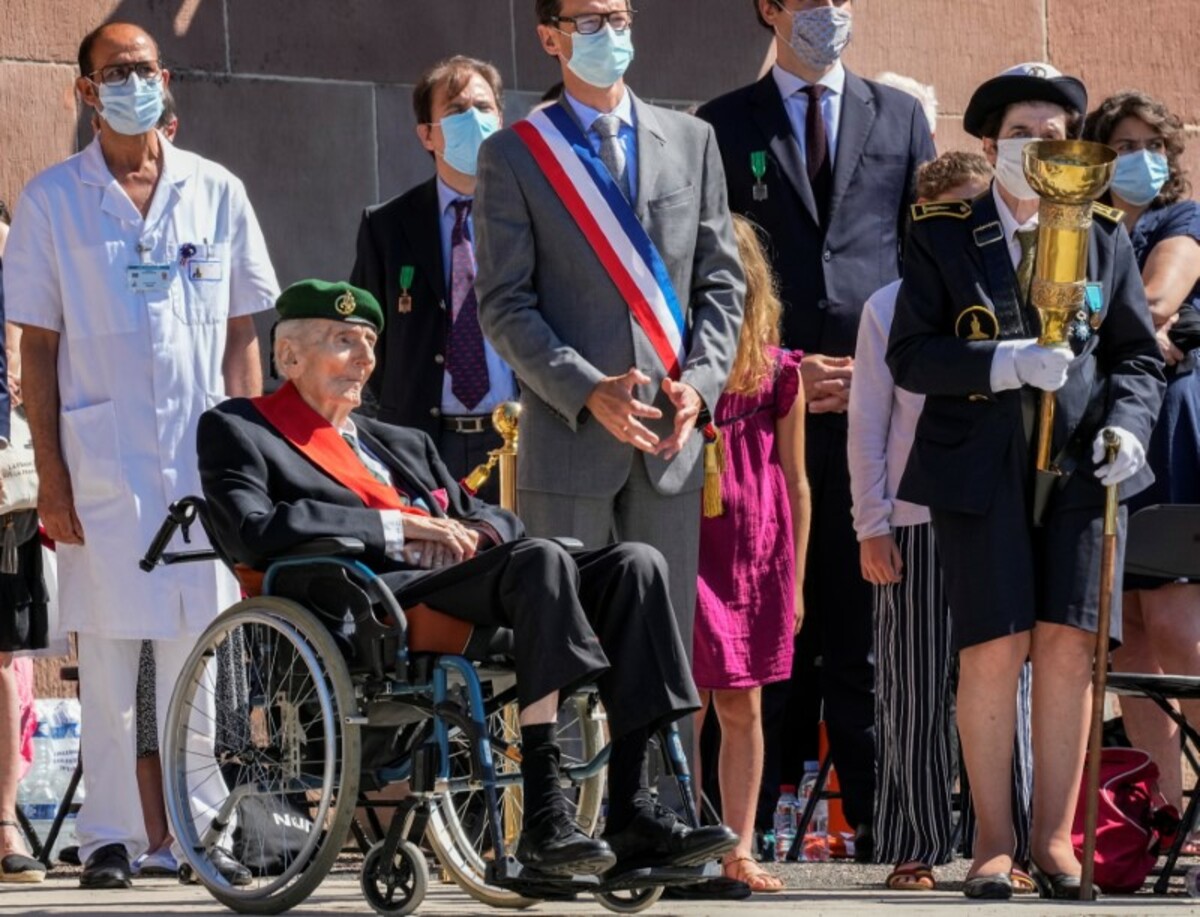 Gautier, 98, rose from his wheelchair to stand, leaning on two sticks, as Macron pinned the medal on his chest. The president then kissed him on both cheeks and embraced him. Gautier was made a Grand Officer of the Legion of Honour.