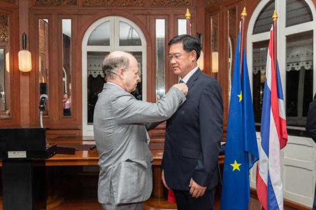 Presenting the decoration to Phongsthorn was Jacques Lapouge, ambassador of France to Thailand. The award presentation ceremony took place at Résidence de France in Bangkok.