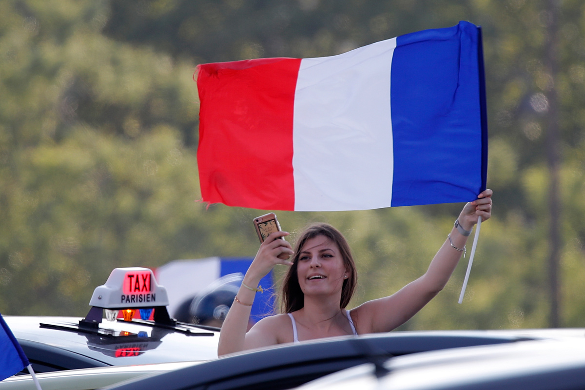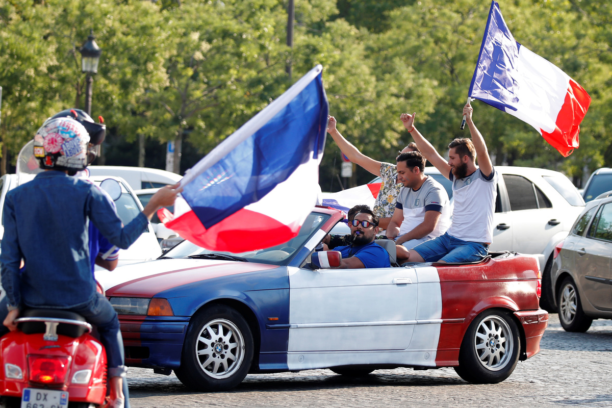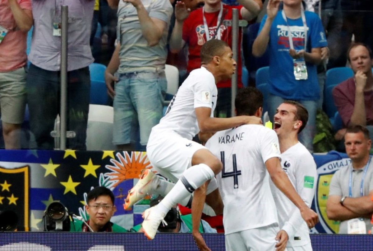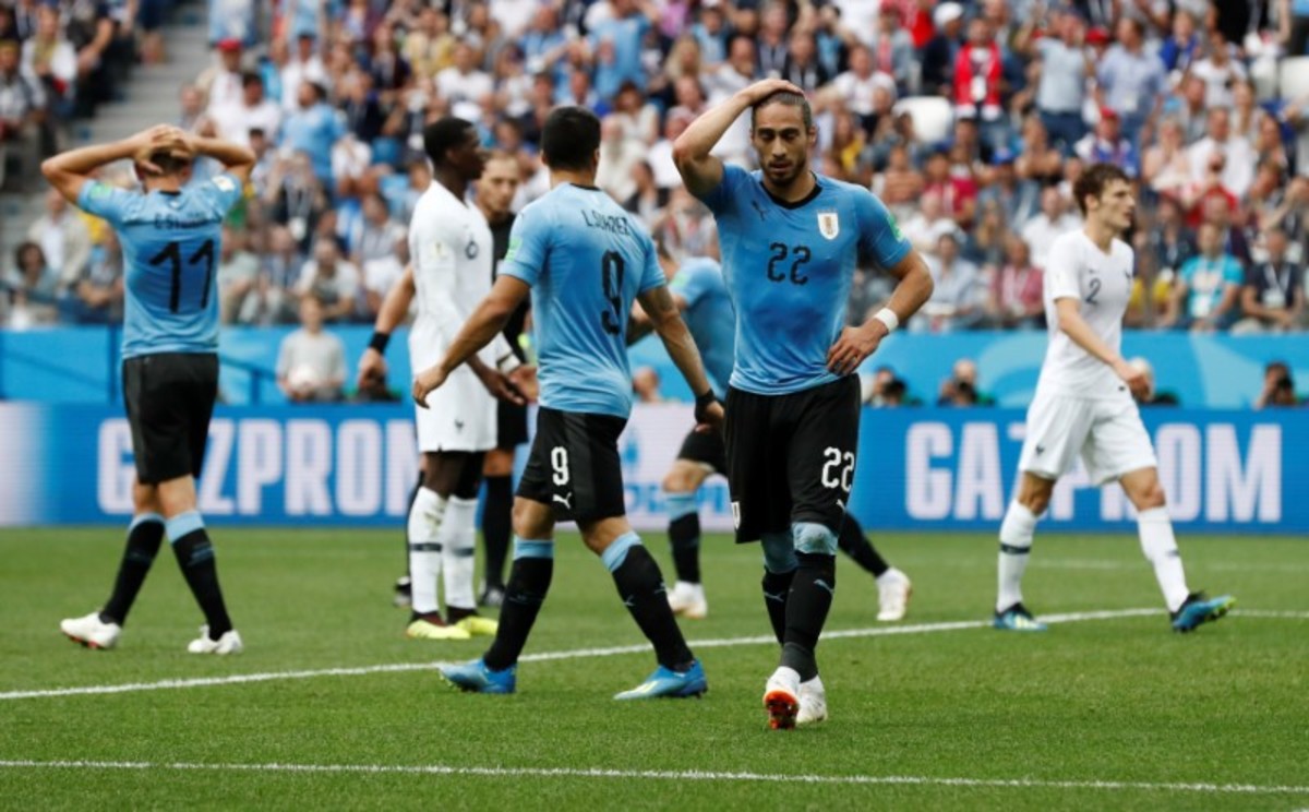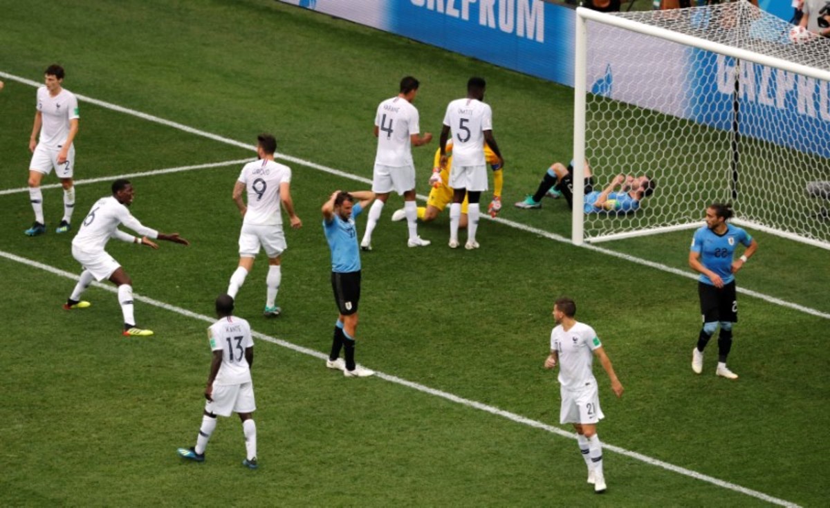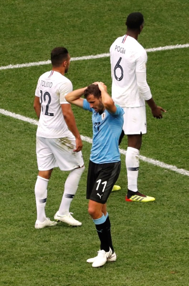 Soccer Football - World Cup - Quarter Final - Uruguay vs France - Paris, France, July 6, 2018 - A fan reacts after the World Cup quarter final match on the Champs Elysees. REUTERS/Charles PlatiauSoccer Football - World Cup - Quarter Final - Uruguay vs France - Nizhny Novgorod Stadium, Nizhny Novgorod, Russia - July 6, 2018 France's Raphael Varane celebrates scoring their first goal with Antoine Griezmann and Kylian Mbappe REUTERS/Jason CairnduffSoccer Football - World Cup - Quarter Final - Uruguay vs France - Paris, France, July 6, 2018 - Fans react after the World Cup quarter final match in front the Arc de Triomphe on the Champs Elysees. REUTERS/Charles PlatiauSoccer Football - World Cup - Quarter Final - Uruguay vs France - Nizhny Novgorod Stadium, Nizhny Novgorod, Russia - July 6, 2018 France's Raphael Varane scores their first goal REUTERS/Darren StaplesSoccer Football - World Cup - Quarter Final - Uruguay vs France - Nizhny Novgorod Stadium, Nizhny Novgorod, Russia - July 6, 2018 Uruguay's Cristhian Stuani reacts REUTERS/Carlos BarriaSoccer Football - World Cup - Quarter Final - Uruguay vs France - Nizhny Novgorod Stadium, Nizhny Novgorod, Russia - July 6, 2018 Uruguay's Martin Caceres reacts after missing a chance to score REUTERS/Damir SagoljSoccer Football - World Cup - Quarter Final - Uruguay vs France - Nizhny Novgorod Stadium, Nizhny Novgorod, Russia - July 6, 2018 France's Raphael Varane celebrates scoring their first goal REUTERS/Jason CairnduffSoccer Football - World Cup - Quarter Final - Uruguay vs France - Nizhny Novgorod Stadium, Nizhny Novgorod, Russia - July 6, 2018 France's Raphael Varane celebrates scoring their first goal REUTERS/Jason CairnduffSoccer Football - World Cup - Quarter Final - Uruguay vs France - Nizhny Novgorod Stadium, Nizhny Novgorod, Russia - July 6, 2018 Uruguay's Martin Caceres reacts after missing a chance to score as France players celebrate with Hugo Lloris REUTERS/Carlos BarriaSoccer Football - World Cup - Quarter Final - Uruguay vs France - Nizhny Novgorod Stadium, Nizhny Novgorod, Russia - July 6, 2018 France's Hugo Lloris makes a save as Uruguay's Martin Caceres shoots at goal REUTERS/Carlos BarriaSoccer Football - World Cup - Quarter Final - Uruguay vs France - Nizhny Novgorod Stadium, Nizhny Novgorod, Russia - July 6, 2018 France's Hugo Lloris makes a save as Uruguay's Martin Caceres shoots at goal REUTERS/Carlos BarriaSoccer Football - World Cup - Quarter Final - Uruguay vs France - Nizhny Novgorod Stadium, Nizhny Novgorod, Russia - July 6, 2018 France's Raphael Varane celebrates scoring their first goal with Kylian Mbappe and Antoine Griezmann REUTERS/Grigory Dukor