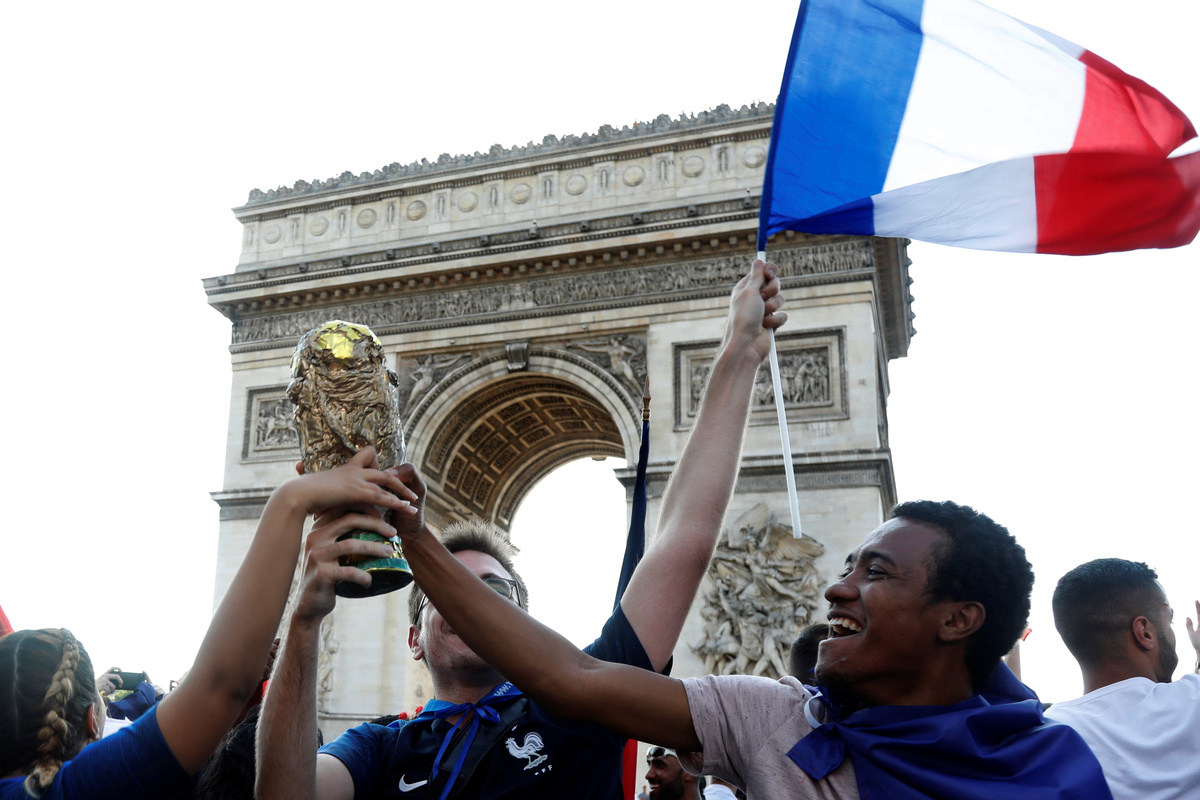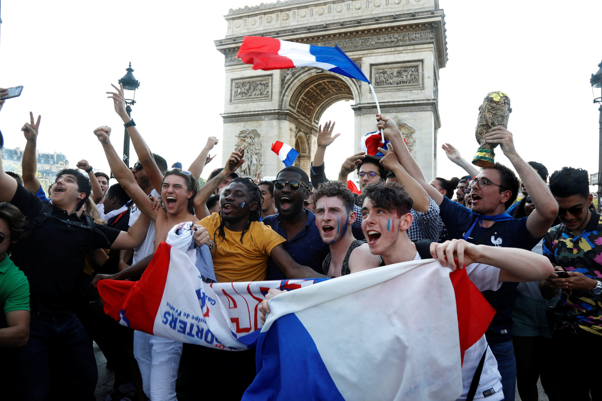 Soccer Football - World Cup - Quarter Final - Uruguay vs France - Paris, France, July 6, 2018 - Fans react after the World Cup quarter final match in front the Arc de Triomphe on the Champs Elysees. REUTERS/Charles Platiau